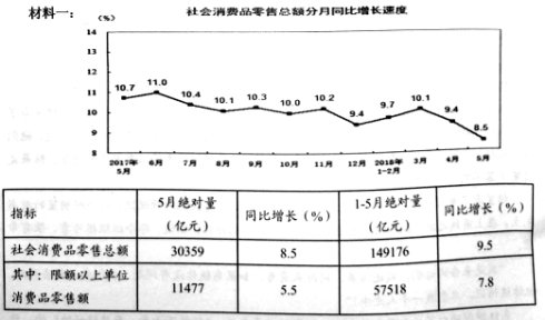 (摘编自《统计局:5月社会消费品零售总额30359亿元同比增长8.5%》中国网财经版2018年6月14日)