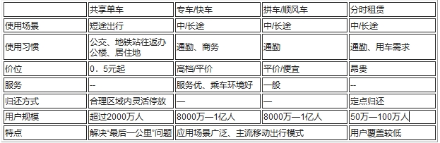 共享出行服务模式对比