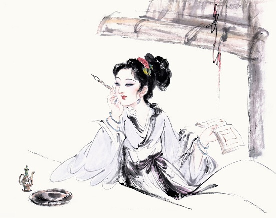 ![]() 浣溪沙·闺情 宋·李清照 绣面芙蓉一笑开,斜飞宝鸭衬香腮,眼波才动被人猜。 一面风情深有韵,半笺娇恨寄幽怀。月移花影约重来。 此词当是易安早期作品。此词写一位风韵秀彻的女子与心上人幽会,又写信相约其再会的情景。上阕主要描写女主人公的美丽的妆饰和容貌,下阕则深入剖析女主人公的行为及心理活动。词中采用了比拟、衬托、细节描写、侧面描写等方法,语言活泼自然,格调明朗欢快。 ![]() 点绛唇·闺思 宋·李清照 寂寞深闺,柔肠一寸愁千缕。惜春春去。几点催花雨。 倚遍阑干,只是无情绪。人何处?连天衰草,望断归来路。 此词上片写伤春之情,下片写伤别之情,刻画出一个爱情专注执着、情感真挚细腻的深闺思妇的形象。全词情词并胜,神韵悠然,层层深入地写出了让人肝肠寸断的千缕浓愁:寂寞愁、伤春愁,伤别愁以及盼归愁。