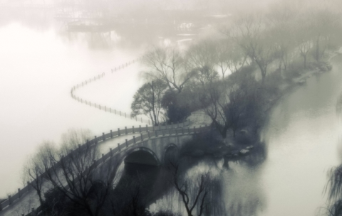 温庭筠 湖上。闲望。雨萧萧。烟浦花桥路遥。谢娘翠蛾愁不销。终朝。梦魂迷晚潮。 荡子天涯归棹远。春已晚。莺语空肠断。若耶溪,溪水西。柳堤。不闻郎马嘶。 注释 ⑴萧萧:或写作“潇潇”,形容刮风下雨的状态。 ⑵烟浦:云烟笼罩的水滨。 ⑶谢娘:此指游春女。《唐音癸签》:“李太尉德裕有美妾谢秋娘,太尉以华屋贮之,眷之甚隆;德裕后镇浙江,为悼亡妓谢秋娘,用炀帝所作《望江南》词,撰《谢秋娘曲》。”翠蛾:翠眉。蛾:一作“娥”。 ⑷终朝:一整天。 ⑸晚:一作“晓”。 ⑹荡子:古代女子称自己远行不归或流荡忘返的丈夫。《古诗十九首》:“荡子行不归,空房难独守。”归棹:归舟,以棹代船。 ⑺空肠断:一本作“肠空断”。 ⑻若耶溪:水名,今浙江绍兴市若耶山下,传说西施曾在此处浣纱。此借指思妇住所。 参考译文 闲望湖上,雨丝凄凄迷迷。那长堤花桥,远远地隐入烟浦雾里。美人相思生愁怨,愁思在翠眉间凝聚。终日盼着爱人归来,梦里还听那雨中晚潮阵阵,似乎在传递他的消息。 浪子的归舟遥遥万千里,春光却又将逝去。听莺语声声,唱不尽断肠的心曲。若耶溪啊相思的溪,溪水西岸那洗纱女,天天看溪水空流,日日在柳堤寻觅,总不见郎君归来的踪迹。 ![]() 赏析 《河传·湖上》是晚唐词人温庭筠创作的一首词。此词写思妇忆人,情致极为缠绵。上片写思妇湖上远望,因烟雨迷濛而不能称心,下片写其终日愁眉百结,先写水上望归,而归棹不见,继写堤上望归,也是马嘶不闻。真切表现了思妇望眼欲穿之心与执着眷恋之情。 此词以湖上迷离雨景为背景,写荡子春晚不归、思妇惆怅之情。 上片一开始就指明地点,是在湖上;“闲望”是一篇之主。关于“闲望”的内容,预先并未说破,而是逐步透露。她极目远眺,但见春雨潇潇,烟浦花桥隐约可见,那儿曾是两人游宴之处。如今远远望去,却是濛濛一片,什么都望不见,看不清,这些就是“闲望”时所见的景色。“翠蛾”句描绘思妇愁眉不展,相思难解,这是她“闲望”时所怀的愁情;这种愁情使她从早到晚心事重重,梦魂犹牵系于水上,盼行人客舟归来。一“迷”字很形象地描绘出这种心情。潮声本易使人联想起客舟和舟中之人,由潮及人,又直接勾起下片首句。 下片叙述思妇闺怨。荡子漂泊天涯,归棹杳无音讯,思妇在湖上望断云山,也盼不到归舟远客,这里方始点出“闲望”的用意所在。春意阑珊,莺语如簧,只令人愁肠欲断,此是念及客舟去远时的失望之情。“若耶溪”本是西施浣纱之处,用来借指思妇住所;那儿长堤垂柳,依依拂水,昔日郎骑马来访,如今柳色依旧,伫立长堤,却听不到旧侣重来的马嘶之声。虽然内容已从湖上转到柳堤,但仍然归结到荡子迟迟未回。而且又与上面的“闲望”相互关联。湖、堤两处都无踪影,其失望为何如。 此词情致缠绵,含意婉转,极尽低佪留连之致,思妇的身份、所处的环境以及盼望之心、失望之情,融合在景物描绘之中,通过逐步透露,间接道出,亦即以“含蓄”、“暗示”的方式来反映。 在音律方面,此词也很有特色,可以说促节繁音,变化多端,与内容起伏很为一致,句法也随之长短参差不齐,有二、三、四、五、七字句,错杂用之,并且换韵频繁,曲折尽情,显得结构复杂而富于变化,想来演奏时悲管清瑟,抑扬婉转,必能丝丝入扣地表达出思妇内心的无限哀怨。