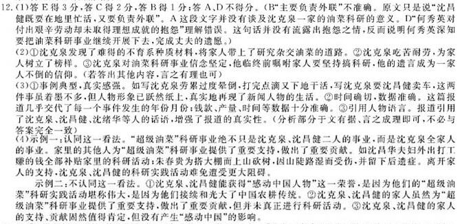 听油菜花开的声音 ——农民沈昌健全家研究超级杂交油菜的故事 唐湘岳 采访归来,那一块与众不同的油菜地时常出现在记者的梦境中。地里每一株油菜的每一个分枝上都挂着标记。这是湖南农民科学家沈昌健全家的“圣地”——超级杂交油菜科研基地。 这块土地诠释着沈昌健全家人的前赴后继与执着守望。那是35载的花谢花开啊! 1978年,沈克泉在贵州养蜂。7月的一天,路边3株野生油菜引起他的注意。湖南的油菜5月份就已成熟收割,而眼前这3株竟还在开花,不仅植株壮硕,分枝还特别多。沈克泉如获至宝,立即兴致勃勃地带回家乡播种。 对杂交油菜来说,不育系的改良和选育是育种的关键。沈克泉发现的正是难得的不育系种质材料,后取名“贵野A”不育系。贵州的这次巧遇,让这一家人走上研究杂交油菜的漫漫科研之路。 播种季节,耕地、除草、施肥;开花时节,套袋、观察、检查纯度;收割季节,每株油菜上的几十个分枝,每一枝都是和不同材料进行侧交的,需要一个个分开脱粒,边脱粒边记录数据:角果数、粒数、千粒重、杂交的父本和母本…… 沈克泉有两儿四女,为了搞油菜科研,他们筹钱的筹钱,帮工的帮工。大儿子沈昌华夫妇外出打工赚的钱全补贴家里搞研究。2006年正月初二,小儿子沈昌健的爱人朱春贵上山砍树搭大棚,山陡路湿,一脚没踩稳,滑了下来,腰部扭伤落下后遗症。沈昌健的两个女儿,更是从小就跟着父母下地帮忙。 沈昌健既要在地里忙活,又要负责外联。湖南省农科院、华中农业大学、中国农科院油料作物检测中心……都留下了他请教专家的足迹。 2007年4月的一天,沈克泉晕倒在地里。医生说:“这是劳累过度,营养没跟上。”正是油菜盛花期,沈克泉每天工作12个小时,一天只吃一顿饭。在诊所打完点滴回来,沈克泉又下地了。 多少个夜晚,沈昌健一觉醒来,看见父亲房里还亮着灯。由于不是科班出身,沈克泉买了大量油菜育种方面的书来学习。 邻居沈绪华说:“我真服了这一家子,长期一盏马灯支在地头,没日没夜地干。我也劝过,研究是科学家的事情,我们农民搞,太苦了。可沈老是怎么回答的:搞科研就是要吃得苦,耐得烦!” 2009年12月8日,沈克泉把家人叫到床前:“油菜事业不能丢,坚持下去,一定会成功的!”几天后,沈克泉去世,终年70岁。“一定会成功的!”这遗言成了一家人不倒的信仰! 沈昌健67岁的母亲何秀英经常通宵达旦忙着工作。“老头走了,就给我留下这些油菜……”何秀英经常看着试验地出神。 今年3月,因科研急用,沈昌健找村干部又借了1万元钱。去年向银行贷款8万元,还没还上。一家人为杂交油菜欠下了不少债。 费用始终是问题。1996年夏,沈克泉端起饭碗扒了两口又放下:“昌健,把车卖了吧。”当时沈昌健和妻子开客运中巴车,每天纯收入200元,是全家最大的经济来源。父亲的话让沈昌健说不出“不”字。卖掉中巴车,解了燃眉之急。 沈昌健夫妇俩已经好些年没买衣服了。朱春贵一条毛巾用了5年,破了好几个洞。除了来客人或请帮工,家里极少吃肉。 大家的帮助一家人铭记在心。2005年,县委书记吴友云支持1万元科研经费;2008年,县长谭本仲特批2万元经费;2009年,常德市科技局支持3万元…… “专家说,我国适合种油菜的冬闲地还有1.2亿亩。如果我们的‘贵野A'不断繁育出产量高、油质优、抗性好的品种,对国家做出贡献,那就是我的中国梦。我们的品种有望在2015年通过省级审定。如果推广100万亩,一亩保守增产50公斤。按每公斤6元算,可为农民增收3亿元呐!”沈昌健描绘着油菜花开的美好前景。 【相关链接】 “这一对前仆后继的农民父子,顽强地进行着堪称伟大的科学实践。他们接续和光大中国伟大农耕传统的壮举,足以感动中国。”(2013年度《感动中国》人物沈克泉、沈昌健的推选理由) (1)下列对这篇通讯报道有关内容的分析和概括,最恰当的两项是(5分)( A.第5段简要交代了杂交油菜科研的一些工作,让读者对沈克泉一家的科研工作有所了解,也说明沈克泉一家的油菜科研意义重大。 B.在油菜科研工作中,沈吕健主要负责外联。为请教专家,他去过湖南省农科院、华中农业大学、中国农科院油料作物检测中心等单位。 C.报道引用了邻居沈绪华的一段话,主要运用侧面描写与正面描写相结合的手法,表现了沈克泉一家不辞辛劳开展科研的奋斗精神。 D.“老头走了,就给我留下这些油菜……”这句话既表达了何秀英对丈夫的思念之情,也表达了何秀英对付出艰辛劳动却未取得理想成就的抱怨。 E.沈吕健一家在油菜科研过程中团结一致,克服重重困难;他们的科研事业获得了一些社会支持,如常德市科技局给他们提供了经费支持。 (2)沈家的超级杂交油菜研究能取得成功,沈克泉功不可没。沈克泉在哪些方面起到了重要作用?请简要概括。(6分) (3)通讯报道讲求真实性。这篇报道的真实性是怎样体现的?请简要分析。(6分) (4)有人认为,“感动中国人物”这一荣誉不应该只颁给沈克泉、沈吕健父子,而应该颁给他们全家人。你是否认同这一看法?请表明观点并阐述理由。(8分) 参考答案