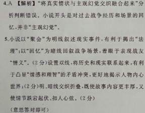 走马陈仓 墨村 ……枪声稀了,硝烟淡了。 条满是尖利石子的羊肠小道,被两个艰难爬行的血人涂抹成了一轴骇人的巨幅彩图。有风无声横空掠过,翻搅凝滞于空气中的粘稠血腥…… 这一惊心动魄的场面,是刚和强在酒过三巡、菜过五味之后,于某个星期六夜晚的共同回忆。 两条汉子遥想三十年前在硝烟中惨死的二十几条弟兄时,仍忍不住泪如雨下,一脸悲伤。 “大,大哥,喝,咱喝!”刚愧疚地紧盯着强那条空荡荡的右袖管,话语哽咽。 “喝,咱喝!”强擦去流到嘴角的泪水,举起了酒杯。 于是,两条汉子在泪眼凄迷中又重重地碰杯。刚仰脖灌下一口酒:“大哥,我还是那句老话,成个家吧。” 强说:“哥不是不想成个家,弟知道,子弹打在了那地方,哥已是个废人……” 刚的眼图又红了:“大哥,让你上家里你偏不去,非要来这小宾馆,飞燕有意见呢。” 强腾出左手掌用力搓了搓脸。三十年前两人康复出院后,强把一封断交信交给了回家探亲的刚,让刚转交女朋友飞燕,并拜托刚替他照顾她。强要刚答应他永远保守秘密…… 强说:“大哥没看走眼啊,大哥已知足了,你是省模范监狱长,又是省五一劳动奖获得者,飞燕跟了你,值啊!” 刚说:“好大哥,我,我我……喝酒,咱喝酒!” “喝!”强说 “喝!”刚说 “咣——”酒杯再一次潇洒地碰撞,将厚重的兄弟情谊迸溅得满屋荡漾。酒逢知己千杯少,一条条突暴的青筋在两条汉子锃亮的脑门儿上争相炫耀旺盛的酒力。 杯盏交错,不觉已是夜半,浓烈的酒香仍四溢着无孔不入。日光灯咝咝喘吁着醉意朦胧。两条汉子的脸膛被五十二度的透明液体烧灼得愈加光辉灿烂。强用力转动着沉重的脑袋,说:“你,你你监狱里,有个叫,叫陈列宝的犯人,听,听说,改,改造得不错。” “陈,陈列宝?”刚睁着惺忪醉眼愣怔半晌,忽然一拍脑门儿,“是那个五短身材、大胡子的盗窃犯?大哥,你认识这人?” 强摇摇脑袋,摇出一句轻描淡写:“啊,不,不认识,只是听人说起过,偶然想起,随便问,问问。” 刚说:“哦,这家伙可是个出了名的反改造分子,屡犯监规,几天前还出手打伤了同监舍的人,现在还在小号里蹲着呢。” “哦,”强打了个酒嗝儿,忙抓起了酒杯,“喝,喝酒,你那,那一杯,咋,咋还没喝完呢?” “喝,咱喝!”刚说 “喝,咱喝!”强说。 于是,两条汉子又重重地碰杯。高脚酒杯里的透明液体一摇一晃地失去了依附,纷纷溅落在杯盘狼藉的桌面上…… ……凶猛的火力如瓢泼大雨在小分队周围哗哗流淌。他们已陷入包围之中。他们边打边退守到一个无名高地上时,小分队只剩下了刚和强。左胳膊中弹的强右臂夹紧冲锋枪,扇形样一通猛扫,透过枪口飘起的蓝烟,一片灌木像割韭菜样齐刷刷被拦腰割断。对方的火力被暂时压了下去。强大叫着刚快快撤退。然而,一串火光从对面丛林里游窜而出。强纵身扑向了刚。一发冲锋枪子弹在强的下身洞穿出一个鲜艳的窟窿,血流如注,把刚的眼睛刺得生疼…… “大哥!”刚大叫一声,忽地一下坐直了身子。一缕儿强烈的太阳光从拉得并不严实的窗帘边越窗而过,直直地照射在了床面上。刚揉揉被阳光刺疼的双眼,这才发现与他同床而眠的大哥不见了,一纸留言尴尬地趴卧在床头上。刚浑身一个激灵,一把抓了过来: 好兄弟: 大哥走了。原谅我的失礼!作为生死弟兄,我不能对你隐瞒这次造访的目的。陈列宝是我大姑唯一的孙子,判了十二年。大姑思孙心切,盼望着孙子能早日减刑出狱,眼睛已哭成了半瞎,前不久探监时得知他又被关了禁闭。大姑一急竟一病不起,咽了气还一直抓着我的手久久不放。大姑知道我俩的关系,可她老人家到死都没有向我开口。失亲的痛苦让我终于厚着脸皮找你来了。这次假借出差路过与你一起叙旧的理由,说穿了,其实是想明修栈道,暗度陈仓。好兄弟,原谅大哥的不辞而别,我实在没有勇气正视你的眼睛…… 大哥,匆匆于凌晨五时。 刚一目十行读完留言,掏出手机一通猛拨,一个温柔的女声频频提示:你所拨打的用户已关机。刚飞身冲出宾馆,驱车直扑客车站,然而,省城直达涅阳的客车,早已绝尘而去…… 第二天,刚拨打强办公室的电话,也无人接听。 不久,强收到了刚的一份传真: 大哥,那晚酒场上我已看出你有话要说,谢谢大哥的理解与支持!实在对不起,陈仓无路啊。 (选自《广西微篇小说精选》,团结出版社2017年版) 4.下列对小说相关内容和艺术特色的分析鉴赏,不正确的一项是(3分) A.开端通过枪声、硝烟、小道和血腥等描写再现战争场景,以回忆连接时空,将真实情状与主观幻觉交织融合起来,新颖别致,扣人心弦。 B.“聚会”中反复出现“喝,咱喝!”的劝酒语,简单干脆,蕴含着人物丰富的情感和微妙的潜台词,又成为情节承转进程中的一个个节点。 C.强在宾馆的一纸“留言”使叙述角度转换,便于人物更真实自然地道出此行的原委、吐露内心的纠结和情感,故事演进也愈显紧凑。 D.小说的叙述语言运用了准确生动的动词、形容词,参差变换的长短句式,以及比喻、比拟等修辞手法,简练凝重,颇具艺术表现力。 5.小说在情节上设置了怎样的“双线”结构?有何作用?(6分) 6.小说以“陈仓无路”结尾有怎样的艺术效果?请结合作品进行分析。(5分 参考答案 ![]() 6.以此结尾,在结构上照应强的留言,起到呼应标题的作用;在人物刻画上,使既有情有义,又坚持原则模范监狱长的形象跃然纸上;在立意上,突出法理战胜情义的