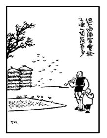 【材料二】 麻雀 [法]法布尔 麻雀属于鸟类,而不是昆虫,但是,它们与人朝夕相处,所以,我心血来潮,在观察研究昆虫的同时,又想到了它们:麻雀在哪儿搭窝筑巢呢? 每一种动物都应该具备一门生命攸关的建筑技艺,以便最大限度地充分利用可使用的场地。 在尚未有屋顶和墙壁的年代,麻雀是利用树洞来作为其栖息之所的,因为树洞较高,可以避开不速之客的骚扰,而且树洞洞口狭窄,雨水打不进来,但洞中却别有一番洞天,宽敞得很。因此,即使后来有了屋檐和旧墙,它仍旧对树洞情有独钟。如果找不到合适的树洞,麻雀就只好不辞劳苦地一点一点地搭建自己的窝巢。 令人惊叹的是它筑巢时所使用的材料。它的那张床垫可谓形状怪异,由一堆乱七八糟的羽毛、绒毛、破棉絮、麦秸秆等组成,这就需要有一个固定而又平展的支撑物来支撑。这种困难对麻雀来说,简直是小事一桩,它会想出一个大胆的方案来:它打算在树梢上,仅用三四根小枝丫作为依托,建窝搭巢。它的这个窝巢悬于半空中,摇摇晃晃的,要想让它不掉下来,可得具有高超的建筑技艺呀! 它在几根枝丫的树杈间把所能找到的东西——碎布头、碎纸片、绒线头、羊毛絮、麦秸秆、干草根、枯树叶、干树皮、水果皮等等——全都聚拢在一起,做成了一个很大的空心球,一旁有一个小小的出入口。这个球形窝体积庞大,因为它的穹形窝顶需要有足够的厚度来抵御雨水。这个窝布置得很乱,没有一定之规,没有艺术性,但却非常结实,能够经受得住一季的风吹雨打。 我家屋前有两棵高大的梧桐树,树枝垂及屋顶。整个夏季,麻雀都飞到这儿来栖息,生息繁衍。梧桐树交相掩映的碧绿枝叶,是麻雀飞出其家屋的第一站。(乙)小麻雀在能够飞翔觅食之前,总是在这第一站叽叽喳喳地叫个不停;吃得肚子滚圆的大麻雀从田间同来也先在此歇息;成年麻雀经常在这儿开“碰头会”,照管家中刚刚出巢的小麻雀,一边训诫不听话的孩子,一边鼓励胆怯的孩子;麻雀夫妇常在这儿吵嘴;还有一些麻雀常在此议论白天所发生的事情。它们从清晨一直到傍晚,络绎不绝地在梧桐树和屋顶之间飞来飞去。然而,12年中,我仅见过一次麻雀在树枝间搭窝的。一对麻雀夫妇忙碌着,辛辛苦苦地在一棵梧桐树上搭建空中巢穴,但是,它们好像对自己的劳动成果并不满意,因为第二年我就没看见它们再搭了。瓦屋顶提供的庇护所既牢固又省力,何需再费心劳神地去搭建什么空中楼阁呢?看来,麻雀们更加偏爱这种省时省力而又牢固的屋檐下的窝巢。 (选自《昆虫记》,陈筱卿译,中央编译出版社2011年版,有删改) 【材料三】 但令四海常丰稔,不嫌人间鼠雀多 丰子恺 ![]() (选自《护生画集》,上海译文出版社2012年版) 【注释】画中诗句出自明代方孝孺的《百雀诗》:“曲巷高檐避网罗,朝来饱啄陇头禾。但令四海常丰稔,不嫌人间鼠雀多。”稔(rěn):庄稼成熟。 14.三则材料中,作者对麻雀的态度有什么不同?各出于什么原因?(6分) 15.材料二中,作者详略得当地说明了麻雀是如何利用不同场地筑巢的。请结合文章内容分析。(6分) 16.甲、乙两处都用了拟人的方法,但语言各有特色,请分别举例说明。(4分) 三(54分) X月X日 今天早晨,我在小区运动场玩,①忽然看到双杠上挂着一幅蜘蛛网。②我以前从来没见过这么完整的蛛网。仔细观察后发现:它看上去像是一个自行车轮,从“车轮”的中心伸出了许多细丝③,我数了数,哇,有25条!它们又被一圈圈蛛丝连起来,就成了漂亮的网。④谁能说蜘蛛不是不厉害呢! (1)第①句中量词使用不当,应改为: (2)第②句啰嗦,应改为: (3)第③处标点不当,应改为: (4)第④句有语病,应改为: