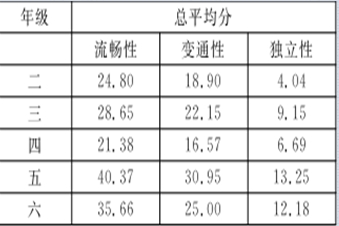 17.日本的研究人员以小学二至六年级的学生为对象,对他们创造性思维的流畅性、变通性、独立性进行测试,所得结果如下表所示: