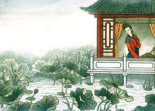 无题二首(其二) 李商隐 飒飒东风细雨来,芙蓉塘外有轻雷。 金蟾啮锁烧香入,玉虎牵丝汲井回。 贾氏窥帘韩掾少,宓妃留枕魏王才。 春心莫共花争发,一寸相思一寸灰。 ![]() 春心:相思之情。 意思是: 我这颗心不再与春花一同萌发; 免得使我寸寸相思,都化成了烟灰。 即是:对爱情的痴痴向往不要和春天的花一样旺盛的开放,相思的滋味不好受就像是都会变成了灰烬飒飒:风声。 芙蓉:荷花。 丝:井绳。 少:年少。 【诗文解释】 飒飒东风送来蒙蒙细雨,荷花塘外传来阵阵轻雷声。打开金蟾咬锁的香炉放入香料,转动玉虎牵动井绳汲水回屋。贾氏隔帘偷看少年美貌的韩寿,宓妃爱慕曹植的才华留枕寄情。相思之情切莫与春花争荣竞发,一寸寸相思都化成了灰烬。 【诗文赏析】 这首诗描写了一位深闺中追求爱情的女子失望的痛苦。女主人公愁怀不展,百无聊赖,不由得沉重得悲叹。全诗含蓄深婉,反复咏叹,震憾人心,动人心弦。抒写了一位幽闺中的女子对爱情热切的追求和失意的痛苦,然而最后还是水月镜花,于是就有了“一寸相思一寸灰”的苦痛,末联迸发出女子内心的郁积与悲愤,既有幻灭的悲哀,也有强烈的激愤不平。李商隐在此诗中可能也融入了自己的身世之感。 这首无题诗写一位深锁幽闺的女子追求爱情而幻灭的绝望之情。 首联“飒飒东风细雨来,芙蓉塘外有轻雷。”描绘环境气氛:飒飒东风,飘来蒙蒙细雨;芙蓉塘外,传来阵阵轻雷。既隐隐传达了生命萌动的春天气息,又带有一些凄迷黯淡的色调,烘托出女主人公春心萌动和难以名状的迷惘苦闷。东风细雨,容易令人联想起“梦雨”的典故;芙蓉塘即莲塘,在南朝乐府和唐人诗作中,常常代指男女相悦传情之地;“轻雷”则又暗用司马相如《长门赋》:“雷殷殷而响起兮,声象君之车音。”这一系列与爱情密切相关的词语,所给予读者的暗示和联想是很丰富的。纪昀说:“起二句妙有远神,可以意会。”所谓“远神,是指这种富于暗示性的诗歌语言所构筑的渺远的艺术意境,一种难以言传的朦胧美。 颔联“金蟾啮锁烧香入,玉虎牵丝汲井回。”写女子居处的幽寂。金蟾是一种蟾状香炉;“锁”指香炉的鼻钮,可以开启放入香料;玉虎,是用玉石装饰的虎状辘轳,“丝”指井索。室内户外,所见者惟闭锁的香炉,汲井的辘轳,它们衬托出女子幽处孤寂的情景和长日无聊、深锁春光的惆怅。香炉和辘轳,在诗词中也常和男女欢爱联系在一起,它们同时又是牵动女主人公相思之情的东西,这从两句分别用“香”、“丝”谐音“相”、“思”可以见出。总之,这一联兼用赋、比,既表现女主人公深闭幽闺的孤寞,又暗示她内心时时被牵动的情丝。 颈联出句“贾氏窥帘韩掾少”使用贾充女与韩寿的爱情故事。见《世说新语》载:晋韩寿貌美,大臣贾充辟他为掾(僚属)。一次充女在帘后窥见韩寿,私相慕悦,遂私通。女以皇帝赐充之西域异香赠寿。被充所发觉,遂以女妻寿。对句“宓妃留枕魏王才”使用甄后与曹植的爱情故事。见《文选·洛神赋》李善注说:魏东阿王曹植曾求娶甄氏为妃,曹操却将她许给曹丕。甄后被谗死后,曹丕将她的遗物玉带金镂枕送给曹植。曹植离京归国途经洛水,梦见甄后对他说:“我本托心君王,其心不遂。此枕是我在家时从嫁,前与五官中郎将(曹丕),今与君王。”曹植感其事作《感甄赋》,后明帝改名《洛神赋》(句中“宓妃”即洛神,代指甄后)。由上联的“烧香”引出贾氏窥帘,赠香韩掾;由“牵丝(思)”引出甄后留枕,情思不断,藕断丝连。这两个爱情故事,尽管结局有幸有不幸,但在女主人公的意念中,无论是贾氏窥帘,爱韩寿之少俊,还是甄后情深,慕曹植之才华,都反映出青年女子追求爱情的愿望之强烈,奔放。末联“春心莫共花争发,一寸相思一寸灰!”突然转折,向往美好爱情的心愿切莫和春花争荣竞发,因为寸寸相思都化成了灰烬。这是深锁幽闺、渴望爱情的女主人公相思无望的痛苦呼喊。热情转化成幻灭的悲哀和强烈的激愤。以“春心”喻爱情的向往,是平常的比喻;但把“春心”与“花争发”联系起来,不仅赋予“春心”以美好的形象,而且显示了它的自然合理性。“相思”本是抽象的概念,诗人由香销成灰联想出“一寸相思一寸灰”的奇句,化抽象为具象,用强烈对照的方式显示了美好事物之毁灭,使这首诗具有一种动人心弦的悲剧美。 李商隐写得最好的爱情诗,几乎全是写失意的爱情。而这种失意的爱情中又常常融入自己的某些身世之感。在相思成灰的爱情感慨中也可窥见他仕途失意的不幸遭际。