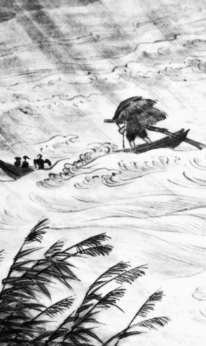 [译文] 您看看那些辛苦的捕鱼人吧,他们驾着小船,在大江上捕捞撒网。江面上风急浪高,小船在风浪中时隐时现,真让人为他们心惊胆战。 [出自] 北宋 范仲淹 《江上渔者》 江上往来人,但爱鲈鱼美。 君看一叶舟,出没风波里。 ![]() 注释: 1.渔者:捕鱼的人。 2.但:只。爱:喜欢。 3.鲈鱼:一种头大口大、体扁鳞细、背青腹白、 味道鲜美的鱼。 生长快,体大味美。 4.君:你。 5.一叶舟:像飘浮在水上的一片树叶似的小船。 6.出没:若隐若现。指一会儿看得见,一会儿看不见。 7.风波:波浪。 8.一叶舟:像落叶漂浮在水面的小船。 译文1: 江岸上来来往往的行人,只喜欢鲈鱼味道的鲜美。 请您看那一叶小小渔船,时隐时现在滔滔风浪里。 译文2: 江上来来往往的人,只是喜爱鲈鱼的味道鲜美。你看江中那小小的渔船,在风浪中飘荡,一会儿看得见,一会儿看不见。 赏析: 这首脍炙人口的小诗《江上渔者》,在范仲淹的诗作里具有代表性。范仲淹不愧为北宋著名的政治家、文学家。他不赞同“守内虚外”的政策,曾亲自戍边防御西夏,被称为“小范老子胸中有数万甲兵”;他力主革新,曾主持过为期短暂的“庆历新政”;难能可贵的是,他具有以民为念,体恤民生疾苦的思想。这一思想,在其作品里得到了充分的揭示,其名篇《岳阳楼记》,是以散文的形式直率明朗地加以反映的:“先天下之忧而忧,后天下之乐而乐”,而《江上渔者》则是以诗的形式委婉含蓄地体现出来的。 《江上渔者》纸短情长,艺术上颇具特色。全诗无一僻字生词,通俗自然,可谓孺婴会吟,老妪能解。然而,它不像白开水般索然无味,而似醇醪般耐人寻味。于质朴中见厚意,于平淡处见深情,达到了苏轼所说的“似淡实美”的境界,是这首诗在艺术上的一大特色。 这首诗在艺术上的另一大特色是,言情述志,欲露还藏。陆时雍曾在《诗镜总论》中提出这样的诗美标准:“善言情者,吞吐浅深,欲露还藏,便觉此中无限。”大凡在发抒情感、表现主题上能真正做到“欲露还藏”的诗作,往往耐人咀嚼,回味无穷。《江上渔者》正是这样的诗。诗旨在反映渔民江上捕鱼的艰险,体恤民生疾苦。显然,在诗意上,它是师承唐代诗人李绅的《悯农》诗“谁知盘中餐,粒粒皆辛苦”的,不像张志和的《渔父》词写渔父写得那样富有闲情逸致:“青箬笠,绿蓑衣,斜风细雨不须归”;而在表达上,又不似李诗那样直言不讳。它犹如烟雾缭绕的山峰,乍看,藏头纳尾,或隐或现,朦胧不清,透过烟雾,则能识其“庐山真面目”;又仿佛是性格内向之人,其情愫蕴积于心,可谓声色不露。 这首诗,除诗题外,诗中无一“渔者”字样,但通篇不离写渔者。前两句诗,似乎仅是在直截了当地写江上来来往往的人(显然是指大商、贵族、权势显赫者,不是指黎民百姓,因为黎民百姓是吃不起名贵鲜美的鲈鱼的)只知道品尝鲈鱼的美味。其实,它也是在间接地写渔民——本来嘛,肥美的鲈鱼是渔民冒着生命危险捕来的。不仅如此,这两句诗还有着这样的潜台词:江上往来人,不知渔者苦。这主要是着墨于“但爱”二字。这样写,就为下文写渔者生活艰险,体现作者关怀民瘼的思想作铺垫,言在此而意在彼。 后两句诗,笔锋陡地一转,描绘了一幅令人怵目惊心的画面:一叶扁舟,在风波里颠簸挣扎,忽而涌上浪尖,忽而又跌入浪谷,无时无刻不面临着倾覆的危险。这里,虽然没有出现渔者的具体形象,也没有直言渔者打鱼之苦、生命之危,但我们透过一叶扁舟浮沉于浩淼烟波中的情景,从“一叶舟”与“风波”一小一大之物的强烈对比中,不难感觉到渔者的存在,体察到渔者艰辛的生活、危险的处境,了解到当时吃鱼者不打鱼、打鱼者不吃鱼这种劳者不获、获者不劳的社会现实,也分明可以触摸到诗人关切与同情渔民之心:“江上往来人,但爱鲈鱼美,不知渔者苦;我知渔者苦,乃作渔者诗,愿君同吾意”。这两句诗景中有情,情寓于景,与前两句诗正好相互映衬,形成鲜明的对照,使得那深邃的思想、真挚的深情欲露还藏,尽在不言中。其艺术效果要远胜过直说渔者的境遇苦、苦、苦,作者的同情深、深、深。 总之,《江上渔者》在艺术表现上似淡实美,欲露还藏,真个是“状难写之景,如在目前;含不尽之意,见于言外”