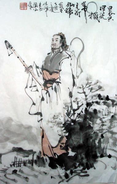 [译文] 清晨起来上山整理荒草;黄昏时,肩扛锄头,沐浴着月亮的清辉回家。 [出自] 东晋 陶渊明 《归园田居》其三 种豆南山下,草盛豆苗稀。晨兴理荒秽,带月荷锄归。 道狭草木长,夕露沾我衣。衣沾不足惜,但使愿无违。 ![]() 注释: 南山:指庐山。 兴:起床。 荒秽:形容词作名词,指豆苗里的杂草。 荷锄:扛着锄头。荷,扛着。 晨兴理荒秽:早晨起来到田里清除野草。 狭:狭窄。 草木长:草木丛生。 沾:沾湿。 足:值得。 但:只。 愿:指向往田园生活,不为五斗米折腰,不愿与世俗同流合污的意愿。 但使愿无违:只要不违背自己的意愿就行了。 译文1: 我在南山下种豆,杂草茂盛豆苗稀少。早晨起来到地里清除杂草,傍晚顶着月色扛着锄头回家。道路狭窄草木丛生,夕阳的露水沾湿了我的衣服。衣服沾湿了并没有什么值得可惜的,只要不违背自己的意愿就行了。 译文2: 南山坡下有我的豆地,杂草丛生,豆苗长得很稀。 清晨我下地松土除草,星月下我扛着锄头回家歇息。 草木覆盖了狭窄的归路,夜露打湿了我的粗布上衣。 衣服湿了又有什么可惜,只求我那心愿至死不移。 赏析: 归园田居·其三 种豆南山下,草盛豆苗稀。 交代了劳作的地点:南山;劳作的成果:草盛豆苗稀;把“盛”与“稀”形成对比,写出了作者不善劳作的特点,同时也写出了劳作的艰辛。 晨兴理荒秽,带月荷锄归。 交代了劳作的时间:一整天;写出了劳作的艰辛,“带月荷锄归”写出了劳动归来的诗人虽独自一人,却有一轮明月相伴。月下,诗人扛着锄头,穿行在齐腰深的草丛中,的一幅美丽的“月下归耕图”暗示了这种艰辛在作者眼里是快乐的。 道狭草木长,夕露沾我衣。 写出了劳作的艰辛,为后文写“衣沾不足惜”做铺垫。 衣沾不足惜,但使愿无违。 点明主旨:写出了劳作的艰辛,但这种艰辛在作者看来是快乐的,因为向往田园生活,不为五斗米折腰,不愿与世同流合污的意愿没有被违背,暗含了作者对田园生活的热爱和对官场黑暗社会污浊的批判,反映了作者高洁傲岸,安贫乐道,淡泊名利的精神品质。 这首诗用语十分平淡自然。“种豆南山下”“夕露沾我衣”,朴素如随口而出,不见丝毫修饰。这自然平淡的诗句融入全诗醇美的意境之中,则使口语上升为诗句,使口语的平淡和诗意的醇美和谐地统一起来,形成陶诗平淡醇美的艺术特色。 陶诗于平淡中又富于情趣。陶诗的情趣来自于写意。“带月荷锄归”,劳动归来的诗人虽然独自一身,却有一轮明月陪伴。月下的诗人,肩扛一副锄头,穿行在齐腰深的草丛里,这是一幅多么美好的月夜归耕图啊!其中洋溢着诗人心情的愉快和归隐的自豪。“种豆南山下”平淡之语,“带月荷锄归”幽美之句;前句实,后句虚。全诗在平淡与幽美、实景与虚景的相互补衬下相映生辉,柔和完美。