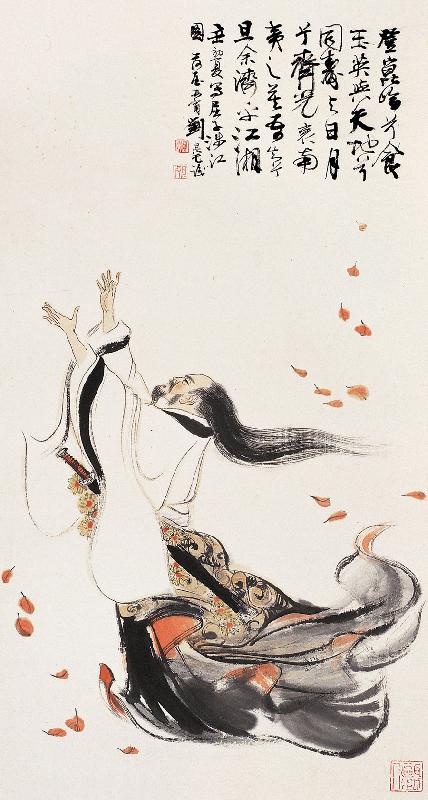 [译文] 我要与天地啊同寿,我要和日月啊同样光明。 [出自] 战国 屈原 《楚辞·九章·涉江》 余幼好此奇服兮,年既老而不衰。 带长铗之陆离兮,冠切云之崔嵬。被明月兮佩宝璐。 世混浊而莫余知兮,吾方高驰而不顾。 驾青虬兮骖白螭,吾与重华游兮瑶之圃。 登昆仑兮食玉英,与天地兮同寿,与日月兮同光。 哀南夷之莫吾知兮,旦余济乎江湘。 乘鄂渚而反顾兮,唉秋冬之绪风。步余马兮山皋,邸余车兮方林。 乘舲船余上沅兮,齐吴榜以击汰。 船容与而不进兮,淹回水而疑滞。 朝发枉渚兮,夕宿辰阳。苟余心其端直兮,虽僻远之何伤。 入溆浦余儃徊兮,迷不知吾所如。 深林杳以冥冥兮,猿狖之所居。山峻高以蔽日兮,下幽晦以多雨。 霰雪纷其无垠兮,云霏霏而承宇。哀吾生之无乐兮,幽独处乎山中。吾不能变心而从俗兮,固将愁苦而终穷。 接舆髡首兮,桑扈臝行。忠不必用兮,贤不必以。伍子逢殃兮,比干菹醢。与前世而皆然兮,吾又何怨乎今之人! 余将董道而不豫兮,固将重昏而终身! 乱曰:鸾鸟凤皇,日以远兮。 燕雀乌鹊,巢堂坛兮。露申辛夷,死林薄兮。 腥臊并御,芳不得薄兮。 阴阳易位,时不当兮。 信佗傺,忽乎吾将行兮! 注释: 奇服:奇伟的服饰,是用来象征自己与众不同的志向品行的。 衰:懈怠,衰减。 铗(音夹颊:剑柄,这里代指剑。长铗即长剑。陆离:长貌。 切云:当时一种高帽子之名。崔嵬:高耸。 被:同“披”,戴着。明月:夜光珠。璐:美玉名。 莫余知:即“莫知余”,没有人理解我。 方:将要。高驰:远走高飞。顾:回头看。 虬:无角的龙。骖:四马驾车,两边的马称为骖,这里指用螭来做骖马。螭(音痴):一种龙。 重华:帝舜的名字。瑶:美玉。圃:花园。“瑶之圃”指神话传说中天帝所句的盛产美玉的花园。 英:花朵。玉英:玉树之花。 夷:当时对周边落后民族的称呼,带有蔑视侮辱的意思。南夷:指屈原流放的楚国南部的土著。 旦:清晨。济:渡过。湘:湘江。 乘:登上。鄂渚:地名,在今湖北武昌西。反顾:回头看。 欸(音哀):叹息声。绪风:余风。 步马:让马徐行。山皋:山冈。 邸:同“抵”,抵达,到。方林:地名。 舲(音零)船:有窗的小船。上:溯流而上。 齐:同时并举。吴:国名,也有人解为“大”。榜:船桨。汰:水波。 容与:缓慢,舒缓。 淹:停留。回水:回旋的水。这句是说船徘徊在回旋的水流中停滞不前。 陼:同“渚”。枉陼:地名,在今湖南常德一带。 辰阳:地名,在今湖南辰溪县西。苟:如果。端:正。 伤:损害。这两句是说如果我的心是正直,即使流放在偏僻荒远的地方,对我又有什么伤害呢? 溆浦:溆水之滨。儃佪:徘徊。这两句是说进入溆浦之后,我徘徊犹豫,不知该去哪儿。 如:到,往。杳:幽暗。冥冥:幽昧昏暗。狖(音又):长尾猿。 幽晦:幽深阴暗。霰:雪珠。纷:繁多。垠:边际。这句是说雪下得很大,一望无际。 霏霏:云气浓重的样子。承:弥漫。宇:天空。这句是说阴云密布,弥漫天空。 终穷:终生困厄。 接舆:春秋时楚国的隐士,佯狂傲世。髡(音坤)首:古代刑罚之一,即剃发。相传接舆自己剃去头发,避世不出仕。 桑扈:古代的隐士。臝:同“裸”。桑扈用驘体行走来表示自己的愤世嫉俗。 以:用。这两句是说忠臣贤士未必会为世所用。 伍子:伍子胥,春秋时吴国贤臣。逢殃:指伍子胥被吴王夫差杀害。 比干:商纣王时贤臣,因为直谏,被纣王杀死剖心。菹醢(音租海):古代的酷刑,将人跺成肉酱。 皆然:都一样。董道:坚守正道。豫:犹豫,踟躇。 重:重复。昏:暗昧。这句是说必定将终身看不到光明。 鸾鸟、凤凰:都是祥瑞之鸟,比喻贤才。这两句是说贤者一天天远离朝廷。 燕雀、乌鹊:比喻谄佞小人。 堂:殿堂。坛:祭坛。比喻小人挤满朝廷。 露申:一做“露甲”,即瑞香花。辛夷:一种香木,即木兰。林薄:草木杂生的地方。 腥臊:恶臭之物,比喻谄佞之人。御:进用。芳:芳洁之物,比喻忠直君子。薄:靠近。 阴阳易位:比喻楚国混乱颠倒的现实。当:合。怀信:怀抱忠信。佗傺:惆怅失意。 忽:恍惚,茫然。 ![]() 译文: 我自幼就喜欢这奇伟的服饰啊,年纪老了爱好仍然没有减退。腰间挂着长长的宝剑啊,头上戴着高高的切云帽。身上披挂着珍珠佩戴着美玉。世道混浊没有人了解我啊,我却高视阔步,置之不理。坐上驾着青龙两边配有白龙的车子,我要同重华一道去游仙宫。登上昆仑山啊吃那玉的精英,我要与天地啊同寿,我要和日月啊同样光明。可悲啊,楚国没人了解我,明早我就要渡过长江和湘水了。 在鄂渚登岸,回头遥望国都,对着秋冬的寒风叹息。让我的马慢慢地走上山岗,让我的车来到方林。坐着船沿着沅水向上游前进啊!船夫们一齐摇桨划船。船缓慢地不肯行进啊,老是停留在回旋的水流里。清早我从枉渚起程啊,晚上才歇宿在辰阳。只要我的心正直啊,就是被放逐到偏僻遥远的地方,又有什么妨害? 进入溆浦我又迟疑起来啊,心里迷惑着不知我该去何处。树林幽深而阴暗啊,这是猴子居住的地方。山岭高大遮住了太阳啊,山下阴沉沉的并且多雨。雪花纷纷飘落一望无际啊,浓云密布好像压着屋檐。可叹我的生活毫无愉快啊,寂莫孤独地住在山里。我不能改变志向,去顺从世俗啊,当然难免愁苦终身不得志。 接舆剪去头发啊,桑扈裸体走路。忠臣不一定被任用啊,贤者不一定被推荐。伍子胥遭到灾祸啊,比干被剁成肉泥。与前世相比都是这样啊,我又何必埋怨当今的人呢!我要遵守正道毫不犹豫