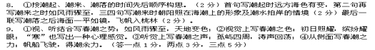 峤屿春潮 [明] 高棅 瀛洲见海色,潮来如风雨。 初日照寒涛,春声在孤屿。 飞帆落镜中,望入桃花去。 【注】 ①峤:山岭; ②屿:有山的小岛。 1.诗人写海上春潮的构思是如何展开的?请简要分析。(6分) 2.诗人写春潮采用了多角度的描写手法,请简要分析。(5分) 暂无答案 1.按按潮起、潮来、潮落的时间先后顺序构思。首句写潮起时远方海色有变,第二句再写潮来之时如风雨骤雨至,三四句写潮来时朝阳照在海潮上的形象及潮水拍岸的情境。最后一联写潮落之后海面一平如境,飞帆入桃林。 2.视、听结合写春潮之势;如风雨骤至,天地变色;视觉上写春潮之色,初日照耀,缤纷耀眼,寒也写出一种心理感觉。听觉上写春潮之声孤屿四周,涛声回荡;从侧面写春潮之力,帆船飞驶,得潮余力。 ![]() 作者 高棅生于元惠宗至正十年,卒于明成祖永乐二十一年,年七十四岁。自幼秉性敦厚,孝敬父母,博览群书,尤其擅长作诗、书法、绘画。明洪武年间(1368~1398)高棅与陈亮、王恭等文人学士结为至交,并与郑定、王锡等文士诗酒唱和,与林鸿、陈亮、王恭、郑定等十人合称“闽中十才子”。