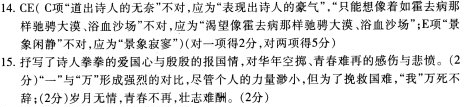 夜泊水村 陆游 腰间羽箭久凋零,太息燕然未勒铭。 老子犹堪绝大漠,诸君何至泣新亭。 一身报国有万死,双鬓向人无再青。 记取江湖泊船处,卧闻新雁落寒汀。 注释:诗人闲居山阴时,于淳熙九年(1182)秋写作了此诗。“绝大漠”,典出《汉书·卫将军骠骑列传》,是汉武帝表彰霍去病之语。“泣新亭”,典出《世说新语·言语》,“过江诸人,每至美日,辄相邀新亭,藉卉饮宴。”周侯中坐而叹:“风景不殊,正有山河之异!”皆相视流泪。唯王丞相愀然变色曰:“当共同戮力王室,克复神州,何至作楚囚相对!” 14.下列对这首诗的赏析,不恰当的两项是( )(5分) A.诗的第一句写出了诗人退居乡野、久离疆场、无缘抗敌的落寞怅惘。“羽箭久凋零”,足见其闲居的郁闷。 B.第二句使用典故感叹“敌未灭,大功未成”的失落,抒发诗人壮志未酬的情怀,为全诗奠定了悲愁的基调。 C.“犹堪”二字道出诗人的无奈,在国难当头之时,年老的诗人,只能想像着如霍去病那样驰骋大漠、浴血沙场。 D.诗人借“泣新亭”的典故,表达了对那些在国家山河破碎之际或醉生梦死或懦弱昏庸的大小官员的不满。 E.尾联写诗人闲泊水村,卧听新雁落在荒寒的汀州上,景象闲静,既点明了诗的题面,又借景抒情、以景结情。 15.诗的颈联抒写了什么感情?请简析。(6分) 参考答案 14、CE(C项“道出诗人的无奈”不对,就为“表现出诗人的豪气”,“只能想像着如霍去病那样驰骋大漠、浴血沙场”不对,应为“渴望像霍去病那样驰骋大漠、浴血沙场”;E项“景象闲静”不对,应为“景象寂寥”) 15、抒写了诗人拳拳的爱国心与殷殷的报国情,对华年空掷、青春难再的感伤与悲愤。“一”与“万”形成强烈的对比,尽管个人的力量渺小,但为了挽救国难,“我”万死不辞;岁月无情,青春不再,壮志难酬。 ![]() 简析 这首诗首联写壮志未酬之意。”羽箭凋零“,“燕然勒铭”形成对照。颔联自抒豪情,一句“犹堪”、一句“何至”构成流水对。颈联写以身许国,而时不我待的矛盾。尾联回应首联“太息”,落到眼前,谓此夜泊船锦水,卧闻新雁,报国之情,难以抒怀。表达了诗人至老不衰的雄心壮志,谴责了那些空谈报国而无所作为的达官贵人。此诗意境沉郁,音情顿挫。