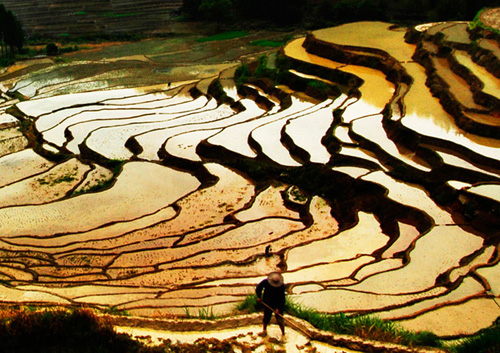 姚鼐 布谷飞飞劝早耕,舂锄①扑扑②趁春晴。 千层石树通行路,一带山田放水声。 注释 ①舂(chōng)锄:白鹭; ②扑扑:扑打翅膀。[1] 译文 布谷飞来飞去的劝说人们早些耕种, 白鹭趁着天晴在天上扑打着翅膀, 在层层石树之间的路上行走, 听得山里田园放水的声音。 ![]() 赏析: 《山行·布谷飞飞劝早耕》是清朝散文家姚鼐所创的一首七言绝句,该诗描写作者山行所见所闻,赞美和歌唱大自然与山乡农民和谐的景象。 开头两句用形象而整饬的对仗句式刻画两种鸟儿的活动,为写春耕营造一种正当其时的氛围。布谷鸟即杜鹃,是人们再熟悉不过的,它在南方春天耕种季节鸣叫,它“播谷播谷”的叫声听上去就像在催人种谷一样,所以叫布谷鸟。一“劝”字,将布谷鸟的叫声人格化,形象生动而富有情味。舂锄即白鹭,它也是江南常见的一种鸟类,全身雪白,两腿细长,喜欢在水田与河边活动。这种鸟在水中起飞,很远就能听到翅膀打水的“扑扑”的声音,当它们成群地在清澈的水边、绿色的山野、湛蓝的碧空飞翔时是很美的,所以杜甫留下了“一行白鹭上青天”千古佳句。该诗中,作者着一“趁”字,同样将舂锄人格化,好像它明白风和日丽的大好春光转瞬即逝似的,因此要抓紧时间一展风姿。可以说,春耕期间山间这两种鸟的活动,既将春天的山乡点染得生机勃勃,又为下文写春耕营造了浓浓的氛围。 第三句写扣题发挥,从仰望的角度写山路之陡峭曲曲。从山下向上望去,只见山路盘旋而上,被层层叠叠的树木和岩石遮断阻隔,有时又露出那么一小段,就这样时断时续,蜿蜒而上,层层盘旋,越盘越高,越高越细。作者以细腻的笔触,巧妙的视角,将江南山路的特点形象地表现出来了,也凸显了山乡生活的大背景。同时,又暗扣了一“行”,暗写了诗人沿山路而上,边登山边欣赏的情形,给人以无穷的想象和回味。如果没有这一句,那么最后通过山田放水声写春耕也就没有依据了。 最后一句是全诗的主旨所在,写的是山乡农民放水播谷的繁忙景象。诗人关注的是山乡的春耕,此时终于凸现出来了。这时,诗人已经来到了山上。低头俯瞰,只见山下斜坡上面层层如梯的水田平整如镜,在阳光的反射下,带子似的一道道绕在山间;从梯田方向正传来汩汩的放水声。由放水声可以想见农民们巳开始播种稻谷,繁忙的春耕就此拉开序幕。至此,首句布谷鸟的劝耕得到了呼应,全诗的主旨得到了凸显,诗人山行之始就带有的欣喜之情更是溢于言表。作者本来就热爱自然,本来就对与自然融为一体的农村生活极为欣赏,当自然景物已经和人们生活和谐地融为一体时,诗人怎能不由衷地赞美和歌唱呢?[2] 该诗写山行所见所闻,构思巧妙,剪裁得体,卒章显“志”,语言清新雅丽,没有冗辞赘语。桐城派主张的“雅洁”和反对“冗辞”,从这里可见一斑。 ![]()