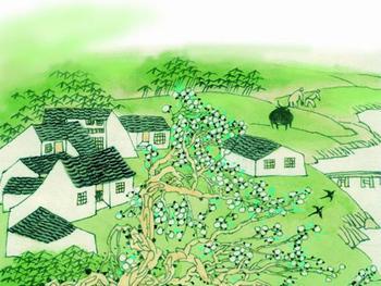 (宋·翁卷) 绿遍山原白满州, 子规声里雨如烟。 乡村四月闲人少, 才了蚕桑又插田。 ![]() 注释: 1.山原:山陵和原野。 2.白满川:指河流里的水色映着天光。 3.川:平地。 4.子规:杜鹃鸟。 5.如:好像。 6.才:刚刚。 7.了:结束。 8.蚕桑:种桑养蚕。 9.插田:插秧。 翻译: 山陵、原野间草木茂盛,远远望去,葱葱郁郁;稻田里的色彩与天光交相辉映,满目亮白。杜鹃声声啼叫中,天空中烟雨蒙蒙。四月到了,农民都开始忙了起来,村里没有一个人闲着。他们刚刚结束了种桑养蚕的事情又要开始插秧了。 [简析 ]这首诗以白描手法写江南农村初夏时节的景象,前两句着重写景绿原、白川、子规、烟雨、寥寥几笔就把水乡初夏时特有的景色勾勒了出来。后两句写人,画面上主要突出在水田插秧的农民形象,从而衬托出"乡村四月"劳动的紧张、繁忙。前呼后应,交织成一幅色彩鲜明的图画。 赏析1 这首诗以白描手法写江南农村(今乐清市淡溪镇)初夏时节的景象,前两句着重写景:绿原、白川、子规、烟雨,寥寥几笔就把水乡初夏时特有的景色勾勒了出来。后两句写人,画面上主要突出在水田插秧的农民形象,从而衬托出“乡村四月”劳动的紧张与繁忙。前呼后应,交织成一幅色彩鲜明的图画。 四月的江南,山坡是绿的,原野是绿的,绿的树,绿的草,绿的禾苗,展现在诗人眼前的,是一个绿色主宰的世界。在绿色的原野上河渠纵横交错,一道道洋溢着,流淌着,白茫茫的;那一片片放满水的稻田,也是白茫茫的。举目望去,绿油油的禾田,白茫茫的水,全都笼罩在淡淡的烟雾之中。那是雾吗?烟吗?不,那是如烟似雾的蒙蒙细雨,不时有几声布谷鸟的呼唤从远远近近的树上、空中传来。诗的前两句描写初夏时节江南大地的景色,眼界是广阔的,笔触是细腻的;色调是鲜明的,意境是朦胧的;静动结合,有色有声。“子规声里雨如烟”,如烟似雾的细雨好像是被子规的鸣叫唤来的,尤其富有境界感。 “乡村四月闲人少,才了蚕桑又插田。”后两句歌咏江南初夏的繁忙农事。采桑养蚕和插稻秧,是关系着衣和食的两大农事,现在正是忙季,家家户户都在忙碌不停。对诗的末句不可看得过实,以为家家都是首先做好采桑喂蚕,有人运苗,有人插秧;有人是先蚕桑后插田,有人是先插田后蚕桑,有人则只忙于其中的一项,少不得有人还要做其他活计。“才了蚕桑又插田”,不过是化繁为简,勾画乡村四月农家的忙碌气氛。至于不正面直说人们太忙,却说闲人很少,那是故意说得委婉一些,舒缓一些,为的是在人们一片繁忙紧张之中保持一种从容恬静的气度,而这从容恬静与前两名景物描写的水彩画式的朦胧色调是和谐统一的。 赏析2 绿遍山原白满川,子规声里雨如烟。乡村四月闲人少,才了蚕桑又插田。这是一首田园诗,描写的是江浙一带乡村四月的风光。作者是南宋诗人,被称为“永嘉四灵”之一的翁卷。第一次读到这首诗,竟被它纯美的田园风光所迷醉:山坡上草木葳蕤,一片青葱翠绿。江南插禾早,蓄满水的稻田里水色与天光交相辉映,满目亮白。杜鹃声声啼叫,江南的天空烟雨迷蒙。四月到了,庄稼人都开始忙农活,没有一个闲人。庄稼活像稻草垛一样堆起多高,一件接着一件,哪有做完的时候?刚结束了蚕桑的事又要插秧了。还是喜欢陕南的四月天。在形色上,它一点也不比江南差。比起翁卷的家乡来,我的家乡陕南的物候总要迟二十天左右。那是一个正在发育的夏天,像一个刚刚长大的女孩,一件件脱去青涩和单薄的外衣,骤然间显得丰满、成熟和性感。立夏一过,阳光一天比一天明媚,熏风一天比一天柔软,天空像复写纸一样的蓝。放眼望乡村,满眼是绿色,每一棵草都在开花,每一棵苗都在拔节。这时候,油菜和小麦还长在田地里,离收割还有一段时间,蚕豆和樱桃却早已摆上了农家的餐桌。芬芳的槐花一串串挂在窗外,装饰着露水明亮的家园。做秧田是一件细致活,得投进去技术和时间。正开花的紫云英被翻埋进田土里,再引来渠水沤田。阳光加热了满田的水,发酵了泥土里的生命,直到田泥变得无比柔软。这时候,退去一部分肥水,再将软泥做成一畦畦的温床,撒上草灰后再抹平。稻种的生命起初只是针尖大的一星点,在温室里长出两片叶子后方可移栽。那种农活叫“栽小秧”,是将一棵棵的小秧苗轻轻地摁进秧畦里去。栽小秧的时候,全家总动员,一幅又一幅点彩派的画作在田地里展开。最后别忘了在田头插个稻草人。麻雀嘴馋,它们虽然对那些已经生根发芽的小秧无技可施,但还得提防它们饥不择食地糟践。接下来,等待秧苗青麦子黄,割了麦子好插秧。那是一段暂时无事可做的时间,是大会战之前相对宁静的时刻。不妨到城里逛半天,归途中男人手里攥一把新买的镰刀,头上戴一顶簇新的草帽,女人腋下是一件新买的夏衣。下雨的时候,男人打了雨伞去串门,或者干脆在家睡懒觉;老人在屋檐下搓草绳,望着满天乌云盼天晴;女人在厨房里煮腊肉,裹挟着肉香的炊烟和迷蒙的雨雾永远纠缠不清。雨雾挡住我眺望远方的视线,却又将我的思念发酵到浓郁。妈妈这时候应该又在给我们做鞋垫吧,这是她每年四月坐在乡村滴雨的屋檐下必定要做的功课。她老人家这些年视力大不如前了,可勤劳的品质使她一直不肯浪费每一寸光阴。她搬个凳子坐在屋檐下,地上放个针线笸箩,伴着檐滴的声音扎进一针又一针,针针是对儿孙的牵挂和叮咛——她