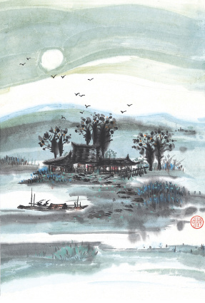 人言落日是天涯,望极天涯不见家。 已恨碧山相阻隔,碧山还被暮云遮! ![]() 注释: 落日:太阳落山的极远之地。 望极天涯:极目天涯。一、二两句说:人们说落日的地方就是天涯,可是极目天涯还是见不到家乡的影子,可见家乡之遥远。 碧山:这里泛指青山。三、四两句说:已经怨恨青山的重重阻隔,而青山又被层层的暮云遮掩,可见障碍之多。 译文: 人家说日落的地方是天涯,我能看见日落的地方也就是能看到天涯,却看不见我的家。我已怨恨层层群山把我和我的家分隔,可层层的群山还是被无尽的云朵所遮盖。 ![]() 〔李觏〕(1009-1059)字泰伯,南城(今江西省)人,世称盯江先生,又称直讲先生,曾任太学说书、权同管勾太学等职。其诗受韩愈、皮日休等人影响,词句意思具有独特风格。有《李直讲先生文集》。 简析: 这首诗的前两句和后两句,分别采取层层递进的写法表现出诗人思念家乡的强烈感和迫切感。 诗意:人们说:日落处就是天尽头,可是望到天涯也看不到我的家。本来绿山阻隔已令人十分遗憾,可这碧绿的山偏偏又被傍晚的云气笼罩! 这首诗表达了诗人思念家乡而且因青山阻隔又被暮云笼罩的情景下十分沉重的心情. 赏析: 乡思是人类普遍共有的一种美好情感。落日黄昏,百鸟归巢,群鸦返林,远在异乡的游子,触景生情,难免生发乡思之愁。这首诗所表现的,正是游子在落日黄昏时所滋生的浓郁乡思。 诗的一二句从远处着笔,写诗人极目天涯时所见所感。人们常说落日处是天涯,可“我”望尽天涯,落日可见,故乡却不可见,故乡远在天涯之外。诗人极力写出故乡的遥远。诗人对空间距离这一异乎常人的感受,虽出乎常理之外,却在情理之中。 诗的三四句从近处着墨,写诗人凝视碧山的所见所感。第三句承上启下,既补充说明“不见家”之由,又“暗渡陈仓”,由前二句着眼于空间的距离转到着眼于空间的阻隔。故乡不可见,不仅因为距离遥远,还因为路途阻隔。故乡为碧山阻隔,已令人惆怅不已,何况眼下碧山又被暮云遮掩。诗人的视野由远而近、由大而小地收缩,色彩由明而暗地变化,乡思愈来愈浓,以至浓得化不开。 钱钟书说:“诗歌里有两种写法:一是天涯虽远,而想望中的人更远;二是想望中的人物虽近,却比天涯还远。”这首诗属于第一种写法。诗人写空间距离之远,遥望家乡的视线被碧山、暮云层层阻隔,给人以故乡遥不可即之感,突出了诗人归乡无计的无奈和痛苦,表达了诗人对故乡真挚浓厚的思念之情。 “人言落日是天涯,望极天涯不见家”,宋人李构的诗本是写“乡思”的,是游子对家乡思念的,但在精神荒野的“空巢”老人,他们的家,不在屋里,而在儿女的亲情之上,他们对于“家”的理解,就是人伦的思盼,儿孙的团聚。“三湘衰鬓逢秋色,万里归心对月明”同样可以反向地理解为老人对“家”所特有的亲情的渴望。“多情只有春情月,犹为离人照落花”,这无情的孤寂,这自感是“离人”的银发族辈,是多么地需要亲情的抚慰啊――给“家”里的老父亲老妈妈写一封信吧,或者,他们会因此多有一份珍藏,多有一份寄托。