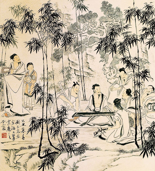 [出自] 三国 魏 嵇康 《赠秀才入军》第十四首 息徒兰圃,秣马华山。流磻平皋,垂纶长川。 目送归鸿,手挥五弦。俯仰自得,游心太玄。 嘉彼钓叟,得鱼忘筌。郢人逝矣,谁与尽言。 注释: 兰圃:有兰草的野地。 秣马:饲马。 磻(音波):用生丝做绳系在箭上射鸟叫做弋,在系箭的丝绳上加系石块叫做磻。皋:水边地。这句是说在皋泽之地弋鸟。 纶:指钓丝。 五弦:乐器名,似琵琶而略小。 太玄:就是大道。“游心太玄”,是说心中对于道有所领会,也就是上句“自得”的意思。 筌:捕鱼竹器名。《庄子·外物》道:“筌者所以在鱼,得鱼而忘筌。”又道:“言者所以在意,得意而忘言。”“得鱼忘筌”是“得意忘言”的比喻,说明言论是表达玄理的手段,目的既达,手段就不需要了。 郢:古地名,春秋楚国的都城。《庄子·徐无鬼》有一段寓言说曾有郢人将白土在鼻上涂了薄薄一层,像苍蝇翅似的,叫匠石用斧子削去它。匠石挥斧成风,眼睛看都不看一下,把白土削干净了。郢人的鼻子毫无损伤,他的面色也丝毫没有改变。郢人死后,匠石的这种绝技也不能再表演,因为再也找不到同样的对手了。这个寓言是庄子在惠施墓前对人说的,表示惠施死后再没有可以谈论的对手。这二句的意思是:像郢人死后,匠石再也找不到与他配合默契的人一样,嵇喜如对自然大道有所领会,在军中也难得解人。 译文1: 将车徒止息在生长着兰草的园圃,牵着马在华山喂草。在水边的平地射着箭,在河流钓着鱼。用目光追随着高飞的鸿雁,手中弹动着虞舜创制的五弦琴。顺乎本性、无所拘束地活动于天地之间,一心探求“太玄”即自然之道。赞称着渔翁(庄子)捕到了鱼,忘掉了筌(捕鱼的工具)。郢人已经死了,谁还会对你畅所欲言。 译文2: 军队在长满兰草的野地上休息,将马放在开着野花的山坡上进食。兄长时而在空旷的草泽上射鸟,时而在长河边垂钓。时而又弹起五弦琴,而目光却追随着大雁飞回天边。兄长心里追求天地自然的大道理,所以随时随地都有自己的心得体会。兄长如同捕鱼人得鱼忘筌一样,大道理得到了,其他也就不在乎了。可一旦兄长像匠石失去郢人一样,即使心有所得,也无人可与其尽情谈论了。 ![]() 本篇原列第十四首,诗人想象嵇喜行军之暇领略山水乐趣的情景。他将在长满兰草的野地上休息,在鲜花盛开的山坡上喂马,在草地上弋鸟,在长河里钓鱼。一边若有所思地目送南归的鸿雁,一边信手抚弹五弦琴。他的心神游于天地自然之中,随时随地都对自然之道有所领悟。显然这里所写的与其说是征人生活,不如说是抒写诗人自己纵心自然的情趣。最后诗人用《庄子》中“匠石斫垩”的典故来表达自己对嵇喜从军远去的惋惜心情。此诗中“目送归鸿,手挥五弦”二句是历来为人们所称道的妙句。它以凝练的语言传写出高士飘然出世、心游物外的风神,传达出一种悠然自得、与造化相侔的哲理境界。