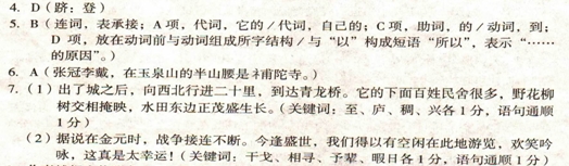 游西山记 【明】都穆 予闻西山之胜久矣,而未获一游。正德丙寅三月之望,御史熊君士选,户部员外郎李君献吉,招余往游。 出城,西北行二十里,至青龙桥,其下民庐颇稠,花柳隐映,水畴东作方兴。予谓士选:“此何异于江南?”北折八里,经回龙庵,复折而西,随行两僮,足不及马,与士选缓辔俟之。二里,抵西湖。湖中萍荇薄藻,交青布绿,而野禽鸟翔泳于水光山色间,皆悠然自适。人言每盛夏荷开,云海满湖,尤为清绝。 沿湖行二里,达功德寺,寺旧名“护圣”。其前有古台三,相传金、元氏主游乐更衣之处。或日此看花钓鱼台也。寺极壮丽,中立二穹碑:其一,宣宗章皇帝御制今寺文;其一,元氏旧物,字皆番刻,莫能读,僧录觉义淇公速登毗卢阁,崇可数寻,凭栏而眺,一寺之胜,攒聚目睫。盖寺倚山而创。寺西景皇帝陵,及尉悼王墓在焉。 适献吉与兵部郎中李君贻教,主事王君伯安偕至,遂共饮花下。献吉言寺在瓮山之阳,有元耶律楚材墓。楚材有词刻华岩洞壁。 出寺,西行数百步,至玉泉山。金章宗建行宫,今废。西南一洞不甚深广,山之北麓凿石为螭头,口出泉,潴而为池,即所谓玉泉。其形如规,莹澈深靓,掬饮之甚甘,上有亭宏敞可憩。其东石梁横跨,泉由之乐流入湖。经大内,注都城东南,至大通河,为京师八景之一。西南行至補陀寺。寺在玉泉山半,门内有吕公洞,广仅丈许。僧云:“仙人吕洞宾常游此:”寺之右跻石级上望湖亭。峰峦围拱,湖水亘其前,俨如匹练。士选、伯安皆留诗亭上,献吉谓予宜有记。 惟西山为京师之胜,而玉泉又西山之胜,盖其润泽滋溉,溥及天下,回国脉之所在也。中间不幸,椐于金元,干戈相寻;今逢至渗,予辈得以暇日游宴笑咏于斯,其幸大矣! 4.对下列句子中加点词的解释,不正确的一项是( A.而未获一游 B.此何异于江南 C.潴而为池 D.寺之右跻石级上望湖亭 5.下列各组句子中,加点词的意义和用法都相同的一组是( A.其东石梁横跨 B.复折而西 C.而玉泉又西山之胜 D.固国脉之所在也 6.下列对原文有关内容的概括和分析,不正确的一项是 A.文章以西湖和玉泉山为描绘的重点,记叙了携友踏青的过程,游览的功德寺在玉泉山的半山腰。 B.作者仅用寥寥数笔就勾勒出西湖清丽如画的景色:禽鸟泳翔,萍藻浮泛;盛夏荷开,云海满湖。 C.作者对玉泉的渊源、外形、水质、流向以及附近亭桥等景物一一予以介绍描述,让人无比向往。 D.结尾处用层递的议论突出玉泉山为京郊首胜。但他奉玉泉为国脉,誉当时为至治,则为谀词。 7.将文中划线的句子翻译成现代汉语。(10分) (1)出城,西北行二十里,至青龙桥。其下民庐颇稠,花柳隐映,水畴东作方兴。(5分) (2)据于金元,干戈相寻;今逢至治,予辈得以暇日游宴笑咏于斯,其幸大矣!(5分) 参考答案 4D 5B 6A ![]() 参考译文