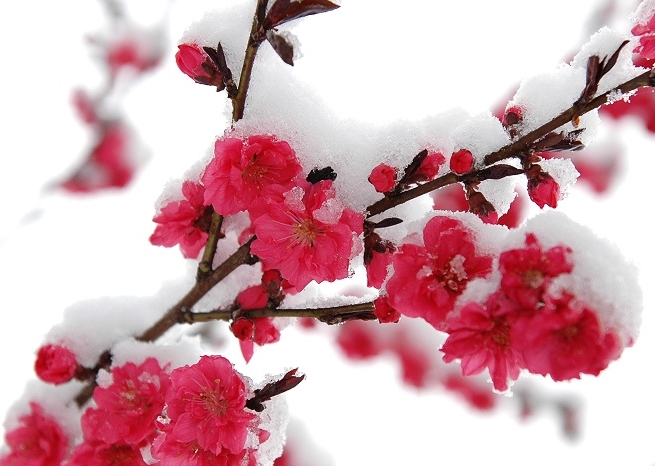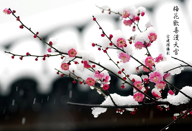 1、梅花落 南北朝·鲍照 中庭杂树多,偏为梅咨嗟。 问君何独然? 念其霜中能作花,露中能作实。 摇荡春风媚春日,念尔零落逐寒风, 徒有霜华无霜质! 2、清平乐 李煜 别来春半,触目柔肠断。 砌下落梅如雪乱,拂了一身还满。 雁来音信无凭,路遥归梦难成。 离恨恰如春草,更行更远还生。 3、梅花词.和杨元素 宋·苏轼 寒雀满疏篱,争抱寒柯看玉蕤。 忽见客来花下坐,惊飞,蹋散芳英落酒卮。 痛饮又能诗,座客无毡醉不知。 花谢酒阑春到也,离离,一点微酸已著枝。 4、蝶恋花 欧阳修 帘幕东风寒料峭,雪里香梅,先报春来早。 红蜡枝头双燕小,金刀剪彩呈纤巧。 旋暖金炉薰蕙藻。酒入横波,困不禁烦恼。 绣被五更春睡好,罗帏不觉纱窗晓。 ![]() 5、梅花引.荆溪阻雪 蒋捷 白鸥问我泊孤舟 是身留,是心留? 心若留时,何事锁眉头? 风拍小帘灯晕舞,对闲影,冷清清,忆旧游。 旧游旧游今在不?花外楼,柳下舟。 梦也梦也,梦不到,寒水空流。 漠漠黄云,湿透木棉裘。 都道无人愁似我,今夜雪, 有梅花,似我愁。 6、临江仙 辛弃疾 老去惜花心已懒,爱梅犹绕江村。一枝先破玉溪春。 更无花态度,全有雪精神。 剩向空山餐秀色,为渠著句清新,竹根流水带溪云。 醉中浑不记,归路月黄昏。 7、卜算子.咏梅 南宋· 陆游 驿外断桥边,寂寞开无主。 已是黄昏独自愁,更著风和雨。 无意苦争春,一任群芳妒。 零落成泥碾作尘,只有香如故。 8、临江仙.梅 南宋·李清照 庭院深深深几许,云窗雾阁春迟, 为谁憔悴损芳姿。夜来清梦好,应是发南枝。 玉瘦檀轻无限恨,南楼羌管休吹。 浓香吹尽有谁知,暖风迟日也,别到杏花肥。 9、殢人娇.后亭梅开有感 南宋·李清照 玉瘦香浓,檀深雪散,今年恨探梅又晚。 江楼楚馆,云间水远。 清昼永,凭栏翠帘低卷。 坐上客来,尊前酒满,歌声共水流云断。 南枝可插,更须频剪,莫待西楼,数声羌管。 10、孤雁儿 南宋·李清照 世人作梅词,下笔便俗。予试作一篇,乃知前言不妄耳。 藤床纸帐朝眠起,说不尽、无佳思。沈香烟断玉炉寒,伴我情怀如水。 笛声三弄,梅心惊破,多少春情意。小风疏雨萧萧地,又催下、千行泪。 吹箫人去玉楼空,肠断与谁同倚?一枝折得,人间天上,没个人堪寄。 11、玉楼春.红梅 南宋·李清照 红酥肯放琼苞碎,探著南枝开遍末?不知酝藉几多时,但见包藏无限意。 道人憔悴春窗底,闷损阑干愁不倚。要来小看便来休,未必明朝风不起。 12、渔家傲 南宋·李清照 雪里已知春信至,寒梅点缀琼枝腻, 香脸半开娇旖旎,当庭际,玉人浴出新妆洗。 造化可能偏有意,故教明月玲珑地。 共赏金尊沉绿蚁,莫辞醉,此花不与群花比。 ![]() 13、清平乐 南宋·李清照 年年雪里,常插梅花醉,挪尽梅花无好意,赢得满衣清泪! 今年海角天涯,萧萧两鬓生华。看取晚来风势,故应难看梅花。 14、水仙子.寻梅 元·乔吉 冬前冬后几村庄,溪北溪南两里霜,树头树底孤山上。 冷风来何处香?忽逢缟袂绡裳。酒醒寒惊梦,笛凄春断肠。淡月昏黄。 15、卜算子.咏梅 毛泽东 风雨送春归,飞雪迎春到。 已是悬崖百丈冰,犹有花枝俏。 俏也不争春,只把春来报。 待到山花烂漫时,她在丛中笑。 16、暗香.疏影 姜夔 辛亥之冬,予载雪诣石湖。 止既月,授简索句,且征新声,作此两曲。 石湖把玩不已,使工妓隶习之, 音节谐婉,乃名之曰《暗香》《疏影》。 暗香 旧时月色,算几番照我,梅边吹笛。 唤起玉人,不管清寒与攀摘。 何逊而今渐老,都忘却春风词笔。 但怪得竹外疏花,香冷入瑶席。 江国,正寂寂。 叹寄与路遥,夜雪初积。 翠尊易泣,红萼无言耿相忆。 长记曾携手处,千树压西湖寒碧。 又片片、吹尽也,几时见得。 疏影 苔枝缀玉,有翠禽小小,枝上同宿。 客里相逢,篱角黄昏,无言自倚修竹。 昭君不惯胡沙远,但暗忆、江南江北。 想佩环、月夜归来,化作此花幽独。 犹记深宫旧事,那人正睡里,飞近蛾绿。 莫似春风,不管盈盈,早与安排金屋。 还教一片随波去,又却怨、玉龙哀曲。 等恁时、重觅幽香,已入小窗横幅。