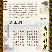 《关山月》 作者:李白 《关山月》 作者:李白 明月出天山,苍茫云海间。 长风几万里,吹度玉门关。 汉下白登道,胡窥青海湾。 由来征战地,不见有人还。 戍客望边...