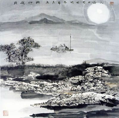 “月高风定露华清。微波澄不动,冷浸一天星”出自《临江仙·千里潇湘挼蓝浦》,北宋秦观词作。 临江仙 秦观 千里潇湘挼蓝②浦,兰桡③昔日曾经。月高风定露华清。微波澄不动,冷浸一天星。 独倚危樯情悄悄,遥闻妃④瑟泠泠。新声含尽古今情。曲终人不见,江上数峰青。 【注】①此词是秦观贬徙郴州途中夜泊湘江时作。②一蓝:形容江水的清澈。③兰桡:兰舟。④妃:指舜的两位妃子,娥皇、女英。 译文 千里潇湘之上,渡口水色青青,屈原的兰舟曾驶过。明月高挂中天,清风渐渐停息,玉露清莹,微波不兴,漫天星斗映寒水。 独倚高高桅杆,心中无限忧思,远远传来凄清的瑟声,低低诉说着千古幽情。一曲终罢人不见,江上青峰孤耸。 ![]() 赏析: 《临江仙·千里潇湘挼蓝浦》,北宋秦观词作。这首词约写于宋哲宗绍圣三年,作者贬官郴州时,回忆昔日曾经潇湘的感受。词人从驻舟湘水之浦生发想像,把自己遭贬的愁苦与屈原、湘灵的不幸遭遇联系起来,感情凄苦而不卑弱。在艺术上写景如画,很好地传达了湘江之上的夜色,那寂寥幽清的场景如在目前,搬用前人成句也宛如自创。全词清空骚雅,意境幽深,充满感伤的情调,渗透着楚辞的情韵,在秦观词中别具一格。 此词乃绍圣三年(1096)秦观贬徙郴州途中夜泊湘江时作。“千里潇湘”,是词人的泊舟之处,也是昔日屈原等迁客骚人乘舟经行的地方。词人因被贬郴州而夜泊湘江,与当年屈原、贾谊等人因怀才不遇而行吟江畔,境遇何等相似。现实的、地理的长河,与历史的、时间的长河通过“千里潇湘”交汇,词人的命运,也通过“千里潇湘”与古代迁客们的命运紧紧相连,引发了作者的深沉感慨。 起两句总叙,写词人泊舟之处,用的是倒装手法。《楚辞·湘君》中有:“桂櫂兮兰枻”、“荪桡兮兰旌”句,即用桂木做的櫂,用兰木做的枻;或用荪草饰的桡,用兰草饰的旌旗,都是形容湘君所乘船的装饰。这里用“兰桡”代指木兰舟,暗指这一带正是当年骚人屈原的兰舟所经过的地方。这两句是写他从处州贬来郴州时,曾乘船经过清澈如蓝的千里湘江,犹如在步当年骚人屈原的足迹,在千里潇湘水上走着迁谪的苦难历程。词人和骚人,通过“千里潇湘”这一今古长流的中介,白然联系起来。从一开始,词中就引入了楚骚的意境与色调。 接着三句写泊舟湘江夜景。写这时月升中天,风停息下来,因为夜深,看两岸花草上露水开始凝结,在月光照射下晶莹透亮。整个潇湘水面是平静的,没有风也没有浪,满天星斗正浸泡在江水里,星星冷得似乎在发抖,写出了深夜的寒意。这是移情写法,把人的冷意由“一天星”表现出来。 词的下片写情。开始两句写词人泊舟湘江浦,独自靠在高高的樯杆上,静静地倾听远方传来的湘妃清冷的瑟声。“妃”,指湘妃。传说潇湘一带,是舜的两个妃子娥皇、女英哭舜南巡不返,泪洒湘竹,投湘水而死的地方。又传二妃善于鼓瑟,《楚辞·远游》有“使湘灵鼓瑟兮,令海若舞冯夷。”特定的时地,触发了词人的历史联想,从而写出了这潇湘之夜似幻似真的泠泠瑟声,曲折地透露出寂寞凄冷的心境。 接着第三句,进一步描写对瑟声的感受,湘妃的瑟声是清凉哀怨的,抒发了她们对舜帝思念的深情,这是古今有情人共同的心声,不仅是湘妃的,也包含了词人的幽怨。词的歇拍两句,写听完曲子,抬头寻找湘妃,她已悄然不见踪影了,只有江岸无数座青青山峰巍然耸立,更进一步写出词人的怅惘之情和刚毅不屈的性格。[5] 结尾全用钱起《省试湘灵鼓瑟》成句,但却用得自然妥帖,仿佛是词人自己的创作。它写出了曲终之后更深一层的寂寥和怅惘,也透露了词人高洁的性格。 这首词和作者以感伤为基调的其他词篇有所不同,尽管偏于幽冷,却没有显得气格羸弱。全篇渗透楚骚的情韵,这在秦词中也是特例。
