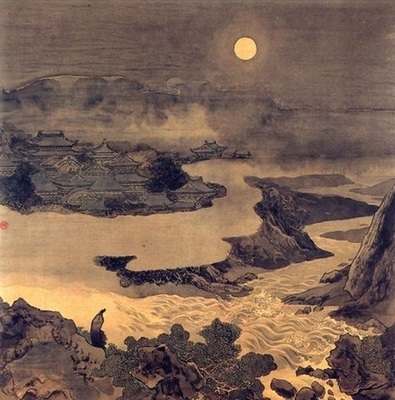 “想得玉楼瑶殿影,空照秦淮”出自李煜《浪淘沙·往事只堪哀》 浪淘沙·往事只堪哀 李煜 往事只堪哀,对景难排。秋风庭院藓侵阶。一任珠帘闲不卷,终日谁来。 金锁已沉埋,壮气蒿莱。晚凉天净月华开。想得玉楼瑶殿影,空照秦淮。 【注释】 ①藓侵阶:苔藓上阶,表明很少有人来。 ②一任:任凭。吴本、吕本、侯本《南唐二主词》、《花草粹编》作“一行”。《续选草堂诗余》、《古今词统》作“一片”。粟本《二主词》、《历代诗余》、《全唐诗》作“桁(héng)”。一桁:一列,一挂。如杜牧《十九兄郡楼有宴病不赴》:“燕子嗔重一桁帘。” ③终日谁来:整天没有人来。 ④金锁:即铁锁,用三国时吴国用铁锁封江对抗晋军事。或以为“金锁”即“金琐”,指南唐旧日宫殿。也有人把“金锁”解为金线串制的铠甲,代表南唐对宋兵的抵抗。众说皆可通。锁:萧本、晨本《二主词》作“琐”。侯本《南唐二主词》、《花草粹编》、《词综》、《历代诗余》、《全唐诗》作“金剑”。《续选草堂诗余》、《古今词统》作“金敛”。《古今词统》并注:“敛,一作剑。”按:作敛不可解,盖承“金剑”而误。 ⑤已:《草堂诗余续集》、《古今词统》作“玉”。《古今词统》并注:“玉,一作已。 ⑥”蒿莱:蒿莱,借指野草、杂草,这里用作动词,意为淹没野草之中,以此象征消沉,衰落。 ⑦净:吴讷《百家词》旧抄本、吕本、侯本、萧本《南唐二主词》、《花草粹编》、《词综》、《续集》、《词综》、《全唐诗》俱作“静”。 ⑧秦淮:即秦淮河。是长江下游流经今南京市区的一条支流。据说是秦始皇为疏通淮水而开凿的,故名秦淮。秦淮一直是南京的胜地,南唐时期两岸有舞馆歌楼,河中有画舫游船。 【参考译文】 往事回想起来,只令人徒增哀叹;即便面对多么美好的景色,也终究难以排遣心中的愁苦。 秋风萧瑟,冷落的庭院中,爬满苔藓的台阶,触目可见。门前的珠帘,任凭它慵懒地垂着,从不卷起,反正整天也不会有人来探望。 横江的铁锁链,已经深深地埋于江底;豪壮的气概,也早已付与荒郊野草。 傍晚的天气渐渐转凉,这时的天空是那样的明净,月光毫无遮拦地洒满秦淮河上。 【创作背景】 这首词是李煜囚于汴京期间(976—978)所作。宋人王轾《默记》记载,李煜的居处有“老卒守门”,“不得与外人接”,所以李煜降宋后,实际上被监禁起来了。他曾传信给旧时官人说,“此中日夕以泪洗面!” ![]() 【赏析】 《浪淘沙·往事只堪哀》是南唐后主李煜的作品,这首词是词人从一个亡国之君的立场和思想感情来写他追怀昔日帝王生活的悲哀和寂寞,词中以直抒悲怀领起,继之以一系列鲜明的图景。词中有眼前景,有象征景,有想象景,把他的凄凉之感,亡国之痛,故国之思,寄寓其中,突出地表现了词人善于捕捉形象的艺术才能。 起句“往事只堪哀”,将全篇基调定出,并凝结到一个“哀”字上。这“哀”是如此深重,以至于“对景难排”。本来“对景难排”就在说无人可以倾诉,只好独自面对景物,希望能作排遣,在诉说哀痛深重的同时,已有孤独之意。由此拈出“难”,是说孤苦之深,面对景物也无法排遣。更接以“秋风庭院藓侵阶”,用苔藓满地写无人造访,用庭院秋风写空旷凄凉,景色已然寂寞,孤苦唯见深重。这样便将人的孤独写得很具体,很形象,那内心的哀伤,非但是“难排”,“对景”更是徒然增痛而已。时当秋天,是枯索萧瑟之季;身在庭院,有高墙围困之难。而在这小院中,秋风吹过,树叶黄落,唯一的绿色就是蔓延生长的苔藓,那层暗绿一直爬到了进入堂室的台阶上,看着令人心酸。刘禹锡的《陋室铭》有“苔痕上阶绿,草色入帘青”的名句,表现高逸脱俗的文人雅趣。这里写苔藓,是说生活的孤寂,在寒瑟的秋天虽然有这一点绿色,却是长年没有人行走的痕迹,尤增悲哀。于是作者“一任珠帘闲不卷”,既然“终日”都无人来。“一桁”写索性,不是痛快的豪放,而是无奈的放弃。“闲”写门帘长垂的状态,实指自己百无聊赖的生活处境,既不是“一帘风月闲”(《长相思》)的悠闲,也不是“同醉与闲平,诗随羯鼓成”(《菩萨蛮》)的闲散。上片就眼前景物而写孤苦的凄凉心境。 下片转折而起,以“金锁已沉埋,壮气蒿莱”悲悼国家破灭、身陷为虏的遭遇。想当年,身为君主,群臣俯首,宫娥簇拥,有过颐指气使的威严,有过春花雪月的风流,而所有的繁华与富贵都一起随着金陵的陷落而烟消云散,化为了乌有。此时徘徊庭院,往事无限,看秋夜天高,秋月澄明,那金陵城中,“雕栏玉砌应犹在”,却不再是往日的气象。南唐已破灭,君主成囚虏,秋月还是那轮秋月,只是“空照秦淮”而已。这里的“玉楼瑶殿影”,可以分作两层理解。第一层是指秦淮河边的旧时宫苑,映照在月光下,投影在河水中,却是有楼影而无人影,重在一个“照”字。第二层是指神话传说中的月宫,华丽壮观却虚无缥缈,就像此刻记忆中的故国宫苑,重在一个“空”。就第一层讲,作者是凭着想象回到旧地,就第二层讲,则作者是在当地望月而遥寄哀思。这两层意思就将一人而两地的情思通过一轮秋月糅合到一起,“空照”不仅在秦淮的楼阁,也在汴京的人一心。“空照”的感受中有无尽的心酸与哀苦。 这首词写当前的孤寂,与往日的繁华相对,不过不是直接道出,而是借景抒情。上片景色“秋风庭院藓侵阶”,写得寒瑟凄惨;下片景