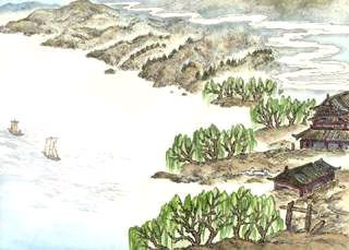 “目送征鸿飞杳杳,思随流水去茫茫”的意思:我的目光追随着飞去的鸿雁,直到他的身影消失在远方。思绪有如不尽的江水,随着茫茫的江涛漂荡。 出自五代宋初时期词人孙光宪《浣溪沙·蓼岸风多橘柚香》 浣溪沙 蓼岸风多橘柚香。江边一望楚天长。片帆烟际闪孤光。 目送征鸿飞杳杳,思随流水去茫茫。兰红波碧忆潇湘。 注释 ⑴蓼岸:开满蓼花的江岸。蓼,红蓼,秋日开花,多生水边。橘柚:橘和柚两种果树。 ⑵楚天:古时长江中下游一带属楚国。故用以泛指南方的天空。 ⑶片帆:指孤舟。孤光:指片帆在日光照耀下的闪光。 ⑷征鸿:远飞的大雁,此喻离别而去的亲人。杳杳:深远貌。 ⑸兰红:即红兰,植物名,秋开红花。江淹《别赋》:“见红兰之受露,望青楸之催霜。”忆潇湘:比喻分别在天涯的亲人,相互在殷切地思念着。传说舜南巡时,其妃娥皇、女英未同行,她们深感不安,随后赶去。在洞庭湖畔时,闻舜已死,悲痛不已,溺于湘水而死。 ![]() 参考译文 长满蓼花的岸边,风里飘来橘袖浓浓的香,我伫立在江边远眺,楚天寥廓,江水滔滔流向东方。那一片远去的孤帆,在水天交汇处泛起一点白光。 我的目光追随着飞去的鸿雁,直到他的身影消失在远方。思绪有如不尽的江水,随着茫茫的江涛漂荡。秋的红兰,江的碧波,一定会让他怀念深情的潇湘。 赏析 《浣溪沙·蓼岸风多橘柚香》是五代宋初时期词人孙光宪创作的一首词。此词写送别之情,词意含蓄。上片写景。首句以乐景橘袖飘香反衬惜别之情。后两句写人去后,主人公“江边一望”之景。其中,江天空寂与片帆孤光相映,写出离情之凄苦。下片抒情。前两句写目送心随以表现依依离情,对仗工稳,构思新巧,意境优美,感情深挚,成为传诵的名句。末句从主人公的心理写他遥祝对方,希望日后他能记住这潇湘的美景。 ![]() 孙光宪写了十九首《浣溪沙》,这首是其中较好的抒情词。此作的抒情特点,不是直抒胸臆,而是借写景之笔,来抒发炽热的惜别留恋之情。 从词中描写的景象看,此是作者在荆南做官时所写。描绘的是中国长江两岸深秋时节的景色,一种特定的典型环境。 首句是写主人公送别亲人时,在江岸上看到的喜人景象。蓼花盛开,清风徐徐,传来阵阵桔柚的芳馨。在这蓼花争艳,桔柚成熟的季节,与亲人团聚,品尝蜜桔甜柚,该是很美好的。此时此刻,亲人却突然离别而去,这实在令作者感到惋惜。令人喜悦的景象,只写一句,在刹那之间,便转入抒发惜别之情,这种构思恰到好处。否则,过多的描写喜悦景色,便会冲淡惜别之情,改变词作的基调。 第二句“一望”二字,颇能传神,表现了主人公顷刻之间由喜悦变为忧愁的神态。第三句紧承第二句,在写景上,与第二句构成不可或缺的完整画图。仅看“片帆烟际”四字,可以说是一幅优美的风景画。第二句描写的是高远清廓的“楚天”。第三句描写客人乘坐小船,孤身只影,在烟水迷漫的江流飘荡。天上地面,景色凄清一片。江边船上,感情密切相连。仅看“片帆烟际”四个字,可以说是一幅优美的风景画。配上“闪孤光”三字,就突然改变了词句的感情色彩,给人一种孤寂凄清之感,写景与抒情结合得相当完美,有浑然一体之妙。 此词在抒情上,采用的是递增法,层层深化,愈转愈深。过片两句惜别留恋之情达到高潮。上句是写目送,下句是写心随,构思新颖巧妙,对仗工整,意境深远,确是风流千古的名词。这两句采用象征手法,以“目送征鸿”远去,象征依依不舍地送别亲人,以“目送征鸿”,象征心跟着亲人远去。结句似深情目送远帆时的默默祝愿。遥与“蓼岸风多橘柚香”首尾呼应,写出了潇湘美景,笔触又饱含深情。整首词句句写景,又句句含情,充满诗情画意,堪称佳作。