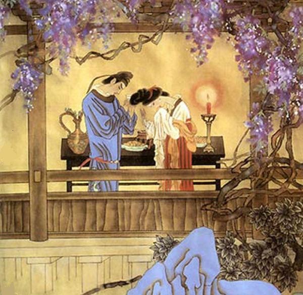 “春如旧,人空瘦,泪痕红浥鲛绡透”的意思:春天还是那般儿依旧,而人白白地为相思而消瘦。泪水打湿了脸上的脂粉,娟丝的手帕也已湿透。 出自陆游《钗头凤·红酥手》 钗头凤 陆游 红酥手,黄籘酒,满城春色宫墙柳。 东风恶,欢情薄,一怀愁绪,几年离索。错,错,错! 春如旧,人空瘦,泪痕红浥鲛绡透。 桃花落,闲池阁,山盟虽在,锦书难托。莫,莫,莫! 注释 钗头凤:词牌名,取自诗句“可怜孤似钗头凤”。 红酥手:一种类似面果子一样的下酒菜。 黄滕酒:又名黄封酒。因官酒以黄纸封口得名。 离索:离群索居。 浥:沾湿。鲛绡:神话中鲛人所织的纱绢。 山盟:指盟约。古人盟约多指山河为誓。 锦书:前秦窦滔妻苏氏织锦文诗赠其夫,后人以锦书喻爱情书信。 【参考译文】 红润细腻的玉手,敬上一杯黄封美酒.满城春色一片,宫墙禁锢着杨柳,东风胁迫,欢情短暂微薄,只留下满腔愁恨,几年孤独离索.错上更加错! 春光依然如旧,人儿日见消瘦,泪水将手帕浸透.桃花开又落,亭台楼阁愈加寂寞.爱情的誓言如山河,传递书信却无人可以拜托.莫说更莫说。 【译文二】 红润柔软的手,捧出黄封的酒,满城荡漾着春天的景色,宫墙里摇曳着绿柳。东风多么可恶,把浓郁的欢情吹得那样稀薄,满怀抑塞着忧愁的情绪,离别几年来的生活十分萧索。回顾起来都是错,错,错! 美丽的春景依然如旧,只是人却白白相思得消瘦,泪水洗尽脸上的胭红,把薄绸的手帕全都湿透。满园的桃花已经凋落,幽雅的池塘也已干涸,永远相爱的誓言虽在,可是锦文书没有人可以投托。深思熟虑一下,只有莫,莫,莫! ![]() 【赏析】 这首《钗头凤》记述了陆游与表妹唐琬的一次别后重逢。唐琬是陆游的表妹,也是著名的才女。她自小与陆游青梅竹马,两小无猜,长大后结为夫妇,感情深厚。但陆母却极为厌恶唐琬,并强行拆散两人。陆游迫于母命,万般无奈,便与唐琬忍痛分离。后来,陆游依母亲的心意,另娶王氏为妻,唐琬也迫于父命嫁给同郡的赵士程。几年过后,两人在沈园相见,陆游感慨万千,忍痛挥笔写就了这首《钗头凤》,抒发了词人幽怨而又无处言说的苦痛。 上片感慨往事。起首三句,“红酥手,黄縢酒,满城春色宫墙柳”,主要记述了两人婚后浓情蜜意的感情生活。“东风恶”四句,在深刻批判当年拆散自己与表妹婚姻的恶势力的同时,也深切表达了词人与爱妻分离后的苦痛,这是全词的高潮部分。最后三个“错”字,三字三叹,无限悲情和怨恨尽在其中。 下片从感慨往事回到现实。“春如旧,人空瘦,泪痕红浥鲛绡透”是词人再次看到唐琬后对其的素描。春光依旧,只是佳人空瘦,如此憔悴的形象,可见离索的几年,他们都是在痛苦折磨中度过。“桃花落”四句实写词人与唐离别之后的处境。他们婚姻虽破,感情犹在,当年的海誓山盟犹记心头,只是碍于现状,无法以鸿书寄相思。最后三个“莫”字,依然三字三叹,所有的怨恨和无奈也只有这三个字才能表达,如此悲音任谁闻之不心碎? 整首词富有极强的节奏感,声情并茂,词中未言泪,却尽带泪,未言情,情却深,其中六个叹词尤为出彩,生生把读者带入“无可奈何花落去”的悲凉意境中。 赏析二 词的上片通过追忆往昔美满的爱情生活,感叹被迫离异的痛苦,分两层意思。 开头三句为上片的第一层,回忆往昔与唐氏偕游沈园时的美好情景:“红酥手,黄滕酒。满城春色宫墙柳。”虽说是回忆,但因为是填词,而不是写散文或回忆录之类,不可能把整个场面全部写下来,所以只选取一个场面来写,而这个场面,又只选取了一两个最富有代表性和特征性的情事细节来写。“红酥手”,不仅写出了唐氏为词人殷勤把盏时的美丽姿态,同时还有概括唐氏全人之美(包括她的内心美)的作用。然而,更重要的是,它具体而形象地表现出这对恩爱夫妻之间的柔情密意以及他们婚后生活的美满与幸福。第三句又为这幅春园夫妻把酒图勾勒出一个广阔而深远的背景,点明了他们是在共赏春色。而唐氏手臂的红润,酒的黄封以及柳色的碧绿,又使这幅图画有了明丽而又和谐的色彩感。 “东风恶”几句为第二层,写词人被迫与唐氏离异后的痛苦心情。上一层写春景春情,无限美好,到这里突然一转,激愤的感情潮水一下子冲破词人心灵的闸门,无可遏止地渲泄下来。“东风恶”三字,一语双关,含蕴很丰富,是全词的关键所在,也是造成词人爱情悲剧的症结所在。本来,东风可以使大地复苏,给万物带来勃勃的生机,但是,当它狂吹乱扫的时候,也会破坏春容春态,下片所云“桃花落,闲池阁”,就正是它狂吹乱扫所带来的严重后果,因此说它“恶”。然而,它主要是一种象喻,象喻造成词人爱情悲剧的“恶”势力。至于陆母是否也包含在内,答案应该是不能否认的,只是由于不便明言,而又不能不言,才不得不以这种含蓄的表达方式出之。下面一连三句,又进一步把词人怨恨“东风”的心理抒写了出来,并补足一个“恶”字:“欢情薄。一怀愁绪,几年离索。”美满姻缘被迫拆散,恩爱夫妻被迫分离,使他们两人在感情上遭受巨大的折磨和痛苦,几年来的离别生活带给他们的只是满怀愁怨。这不正如烂漫的春花被无情的东风所摧残而凋谢飘零吗?接下来,“错,错,错”,一连三个“错”字,连迸而出,感情极为沉痛。但这到底是谁错了呢?是对自己当初“不敢逆尊者意”而终“与妇诀”的否定吗?是对“尊者”的压迫行为的否定吗?是对不合