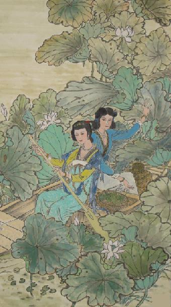 “照影摘花花似面。芳心只共丝争乱”出自 欧阳修《蝶恋花》 蝶恋花 欧阳修 越女采莲秋水畔。 窄袖轻罗,暗露双金钏。 照影摘花花似面。芳心只共丝争乱。 鸂鶒滩头风浪晚。 露重烟轻,不见来时伴。 隐隐歌声归棹远,离愁引著江南岸 注释 ①越女:越地自古多出美女,后常用越女泛指美女。 ②轻罗:质地轻软而薄的丝织品。 ③钏(chuàn):用珠子或玉石穿起来做成的镯子。 ④鸂鶒(xīchì):是一种类似鸳鸯的水鸟,而色多紫,性喜水上偶游,故又称紫鸳鸯。 ⑤棹:船桨。归棹:归船。 参考译文 明净的秋水畔,一位美丽的江南少女正在采莲。轻盈的罗袖,玉腕上时隐时露的金钏,勾勒出她绰约的丰姿和婀娜的身影。她的娇颜倒映在水上,与莲花争妍,她的纤手摘取了香藕,却不防藕"丝"缕缕,撩起了她的绵绵情思……转眼天晚,风起露降,沉浸于遐想的少女蓦然回神,却只见一派晚烟轻浮,不见了同来的伙伴。此时,远处传来了隐隐的棹歌声,只听得那歌声愈去愈远,余音袅袅于江南岸边,似是洒下了一路离愁。 【译文二】 秋日水畔采莲舟,越女采莲乘舟行。轻盈罗衫窄窄袖,双腕金钏时隐露。水影娇面面似花,分不清,哪是娇面哪是花。采花梗断丝缕缕。芳心于丝乱一团。天晚了,起风了,荷塘上涌起阵阵波涛。采莲船风浪中颠簸、挣扎,有的竟被风浪冲散,似乎只剩下一个采莲姑娘。朦朦不见来时伴。伙伴莲舟已去远,时断时续歌声传。莲舟渐远歌渐断,洒下离愁一大片,离愁直抵江南岸。 ![]() 赏析 《蝶恋花·越女采莲秋水畔》为北宋文学家、史学家欧阳修所作,此词以通俗的语言、鲜明的形象、明快的节奏,曲折深婉地表现了越女采莲的动人情景。境界迷离惝恍,启人遐想,曲终而味永,正是这首词的妙处。这首词的主人公是一位采莲女,写的是她的相思离愁。 此词以通俗的语言、鲜明的形象、明快的节奏,曲折深婉地表现了越女采莲的动人情景。起首三句即点明人物身份和活动环境,仿佛令人看到一群少女美丽的荷塘里,用灵巧的双手采撷莲花。 她们的衣着颇与文献记载相符——据马端临《文献通考》卷一四六《乐考》云:宋时教坊有采莲舞队,舞女们均“衣红罗生色绰子(套衫),系晕裙,戴云鬟髻,乘彩船,执莲花”。这里词人只是抓住舞女服饰的一部分,便把她们的绰约丰姿、婀娜舞态勾勒出来,笔法至为简练。“暗露双金钏”一句写得更好,富有一种含蓄的美、朦胧的美。玉腕上的金钏时隐时露,闪闪烁烁,便有一种妙不可言的美感,若是完全显露出来,即毫无意味了。以下两句分别写采莲姑娘的动作和表情,在明白晓畅的语言中蕴藏着美好的形象和美好的感情,语浅意深,以俗为雅。以荷花比女子,在唐宋词中屡见不鲜。李珣《临江仙》云:“强整娇姿临宝镜,小池一朵芙蓉。”陈师道《菩萨蛮》云:“玉腕枕香腮,荷花藕上开。”但它们都离开了荷塘的特定环境,没有具体的形象作为陪衬,而且格调不高。这里的“照影摘花花似面”,俗中见雅,形象逼真。它的精神实质是较高雅的,可以娱悦和陶冶人们的性情。就意义来讲,这句话写的是采莲女子先是临水照影,接着伸手采莲,然后感到花如人面,不忍去摘。由于层次多,动作性也很强,故很容易揭示人物的内在感情。“芳心只共丝争乱”一句,便是表现人物的内心矛盾。芳心,是形容姑娘们美好的心灵。“丝”字指采摘莲花拗断莲梗时从断口中拉出来的丝,即温庭筠《达摩支曲》所云“拗莲作寸丝难绝”的丝。随事生发,信手拈来,以此丝之乱拟彼心之乱,构想绝妙。 下片采莲船在风浪中颠簸、挣扎,有的竟被风浪冲散,似乎只剩下一个采莲姑娘。“鸂鶒滩头风浪晚”七个字渲染出一种紧张气氛。鸂鶒是一种类似鸳鸯的水鸟,而色多紫,性喜水上偶游,故又称紫鸳鸯。接着词笔转而写采莲姑娘寻找失散的伙伴。“露重烟轻”,是具体地描绘暮色。此时天幕渐渐暗下来,暮色苍茫,能见度极低,也许失散的伙伴相去不远,但采莲姑娘却找不到她们。其焦急之情,仓皇之状,令人可以想见。 根据“隐隐歌声归棹远 ”一句来看,她们已快乐地回家,当然是找到了;而“离愁引著江南岸”,则似若有所失,又像是没有找到。 ![]() 赏析二 上片写越女通过外貌描写,表现了采莲姑娘之美。首先写道:“越女采莲秋水畔。窄袖轻罗,暗露双金钏。”第一句“越女采莲秋水畔”中,“越女”是人物。“采莲”是事件。“秋”是时间(季节)。“水畔”是地点。在一句话中,浓缩了时间、地点、人物和事件。“越”泛指现在的浙江省或该省东部地区,也专指绍兴一带。接着写道:“窄袖轻罗,暗露双金钏。”这里,词人运用特写的手法,由群体到个体,对越女的外貌描写。首先是穿着。“窄袖轻罗”即薄薄的短袖罗衣。宋代沈括在《梦溪笔谈·故事一》中写道:“中国衣冠,自北齐以来,乃全用胡服。窄袖,緋緑(指红色和绿色的官服)短衣,长靿鞾,……” 然而,我们要注意到,欧阳修描写服饰只是抓住越女服饰的一部。其中,一个“窄”、一个“轻”字用得很妙,不但表明了这样的穿着是符合越女采莲的需要,而且也突出了越女的绰约丰姿之美。接着就写穿戴。词人写道:“暗露双金钏。”“暗露”即时隐时现。意思是说,手腕上的金钏时隐时露。注意的这里的“双”字,是有成双成对的寓意。这样描写劳动者华丽的装束,在中国古代诗词中是一种常见的手法,目的是为了突出人物