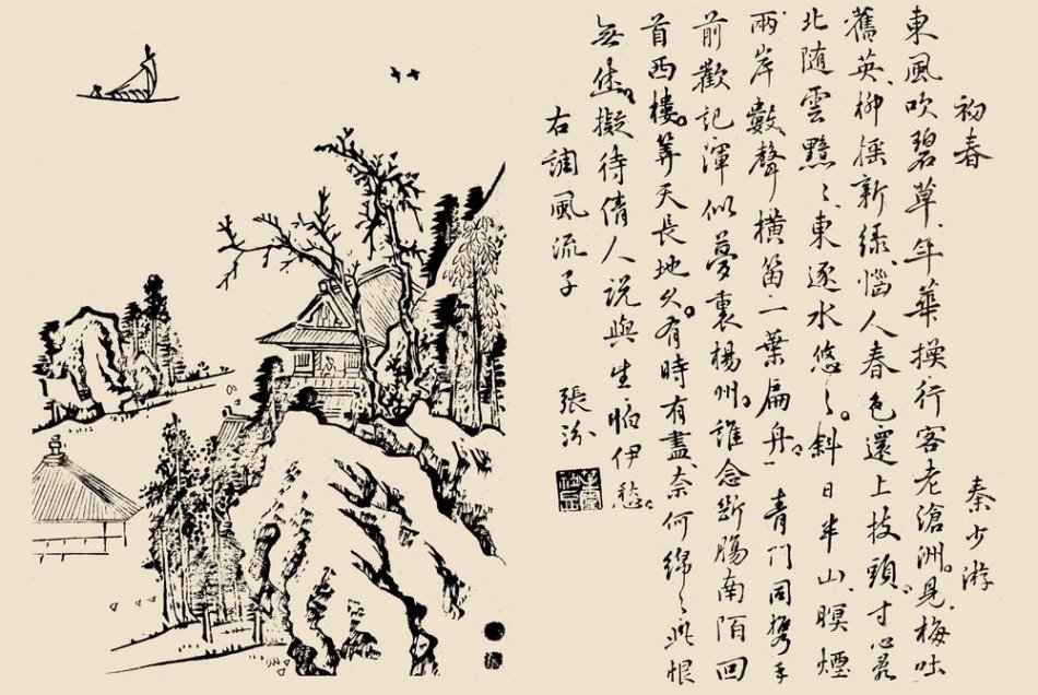 “斜日半山,暝烟两岸,数声横笛,一叶扁舟”的意思:半山的斜晖,两岸笼罩的暮霭,驾着一叶扁舟,远处传来数声牧童的横笛。 出自秦观《风流子·东风吹碧草》 东风吹碧草,年华换、行客老沧洲。见梅吐旧英,柳摇新绿,恼人春色,还上枝头,寸心乱,北随云黯黯,东逐水悠悠。斜日半山,暝烟两岸,数声横笛,一叶扁舟。 青门同携手,前欢记、浑似梦里扬州。谁念断肠南陌,回首西楼。算天长地久,有时有尽,奈何绵绵,此恨难休。拟待倩人说与,生怕人愁。 【注释】 1.东风二句:意犹《望海潮》其三:“东风暗换年华。” 2.行客:行人,出外作客之人,游人。《南史·夷貊传下》文身国:“土俗欢乐,物丰而贱,行客不赍粮。”唐李顾《题綦毋校书别业》诗:“行客暮帆远,主人庭树秋。”《花间集》卷十李珣《巫山一段云》:“啼猿何必近孤舟,行客自多愁。” 3.沧洲:水滨,隐者所居。《南史·张充传》:“飞竿钓渚,濯足沧洲。”南齐谢朓《之宣城郡出新林浦向板桥》诗:“既欢怀禄情,复协沧洲趣。”老:喻旅途之苦。 4.恼人:撩拨人,惹人烦恼。恼人春色:唐罗隐《春日叶秀才曲江》诗:“春色恼人遮不得,别愁如谑避还来。”五代魏承班《玉楼春》:“一庭春色恼人来,满地落花红几遍。”宋王安石《夜直》诗:“春色恼人眠不得,月移花影上阑干。” 5.还上枝头:表面上写梅吐蕊、柳焕芽的春色爬上枝头。其实是写恼人的心情,涌上心头。 6.暝(míng)烟:傍晚的烟霭。 7.横笛:竹笛,古称“横吹”,对直吹者而言。宋沈括《梦溪笔谈乐律一》:“或云:汉武帝时,丘仲始作笛;又云起于羌人。后汉马融所赋长笛,空洞无底,剡其上孔。五孔,一孔出其背,正似今之尺八。李善为之注云:七孔,长一尺四寸。此乃今之横笛耳。太常鼓吹部中谓之横吹,非融之所赋者。”《太平御览》卷五八。 8.一叶扁舟:谓小船。北周瘐信《哀江南赋》:“吹落叶之扁舟,飘长风于上游。”《白氏六帖》:“古者观落叶以为舟。”宋苏轼《前赤壁赋》:“驾一叶之扁舟,举匏樽以相属。” 9.青门:汉代长安城门。《三辅黄图》卷一:“长安城东出南头第一门曰霸城门。民见门青色,名曰‘青城门’,或曰‘青门’。”此处借指汴京城门。 10.前欢:昔日的欢娱。南唐冯延巳《鹊踏枝》:“历历前欢无处说,关山何日休离别。” 11.浑似:浑似,全似。《诗词曲语辞汇释》卷二:“浑犹也……刘过《唐多令》词:‘黄鹤断矶头,故人曾到不?旧江山浑是新愁。’浑是,全是也。卢祖皋《江城子》词:‘载酒买花年少事,浑不似,旧心情。’浑不似,全不似也。” 12.梦里扬州:扬州的往事如梦一样。语本唐杜牧《遣怀》诗:“十年一觉扬州梦,赢得青楼薄幸名”。秦少游有《梦扬州》词,记在扬州的冶游,结云:“佳会阻,离情正乱,频梦扬州。” 13.南陌(mò):南郊的道路。泛指城郭,此指分手的地方。梁武帝《河中之水歌》:“洛阳女儿名莫愁,十三能织绮,十四采桑南陌头。”唐卢照邻《长安古意》诗:“北堂夜夜人如月,南陌朝朝骑似云。”此指汴京郊外。 14.西楼:此指恋人。梁瘐肩吾《奉和春夜应令》诗:“天禽下北阁,织女入西楼。”后多指女子所居。宋李清照《一剪梅》词:“雁字回时,月满西楼。” 15.算天长四句:化用唐白居易《长恨歌》:“天长地久有时尽,此恨绵绵无绝期。” 16.倩(qiàn)人:请人、托人。 【参考译文】 春天的风,吹得遍野碧绿绿的,正是一年之中最美好的时节,本该好好欣赏一番,但此时的我,只不过一贬客,奔波在赴杭州的水路里。看到吐露着未开的蓓蕾,柳树焕发出嫩绿的新芽,这无边春色却闹的人一番着恼。是因为心里乱了!乱得连春色也恼起来了。一路回首北国,只见云雾暗淡,东望征程,又是江水悠悠,没个尽头,怎么能让人痛快起来呢。半山的斜晖,两岸笼罩的暮霭,驾着一叶扁舟,远处传来数声牧童的横笛。不管眼见的还是耳听的,都让人心烦。 在城门口相互携手,共同回忆过去的欢愉,扬州的往事浑似梦境一样。谁能体会到我在南郊的道路上回望你所在的方向时内心思念你的愁苦?我想来,天再长,地再久,也总有个尽头的时候,可我的恨却怎么也消不了啊!我想把这恨说给别人听,可担心别人也会被愁坏的。 ![]() 【写作背景】 《风流子·东风吹碧草》作于北宋绍圣元年(1094年),哲宗亲政,重新起用所新派人物,旧派势力遭到沉重打击。秦观及其友人纷纷被贬斥出京,谪往各地。此词作于词人由汴京被贬往江南之时。 【赏析】 这首词表面上看是怀念昔日青楼旧好的词,实际上应是怀念同时遭贬谪的友人。 上片主要写贬谪途中的孤单凄苦及烦乱的心绪。万物勃兴的春天本来能给人以美的享受,使人充满希望和信心。但这在身处逆境的作者眼中,却完全失去了光彩,变成了另外一种样子。开头三句写作者目睹春天的到来,感叹时光流逝,担心自己将终老贬所。这自然是悲哀的,因此在他眼中,梅红柳绿的大好春光包就变成“恼人春色”了。但这种烦恼躲不掉,摆脱不开,心烦意乱,伤感倍增,觉得“随云”“逐水”都无出路。最后四句写夕阳含山,暮霭沉沉,身处“一叶扁舟"之上,漂泊茫茫大江之中的孤寂景况。偏偏此时又传来“数声横笛”,这凄厉的笛声实在叫人断肠,无疑给孤寂的“行人”又增添了几分凄凉。 起首第三句谓“行客老沧洲”,有‘归欤’之叹。作者仕途不顺,所以想要归隐沧洲。此时自然界的景色是美好的。“梅吐旧