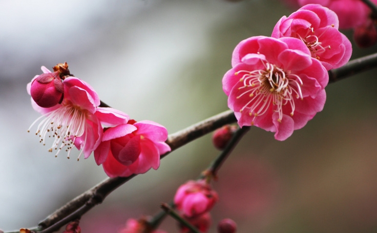 湘梅① 人绕湘皋②月坠时。斜横花自小,浸愁漪③。一春幽事有谁知。东风冷,香远茜④裙归。 鸥去昔游非。遥怜花可可⑤、梦依依。九疑⑥云杳断魂啼。相思血,都沁绿筠枝⑦。 【注释】 ①湘梅:此词有作“小重山令”。原题“赋潭州红梅”。据范成大《梅谱》载,红梅品种有“潭州红”。潭州,今湖南长沙。 ②湘皋(gāo):湘江岸边。 ③漪(yī):涟漪,细小的波纹。 ④茜(qiàn):红色。 ⑤可可:可爱、可人,言其娇小的样子。 ⑥九疑:九嶷山,在湖南宁远县南。传说舜葬于此,舜妃娥皇、女英思帝悲痛,泪洒竹上,竹身皆成斑,谓之斑竹。 ⑦绿筠(yún)枝:绿竹。血泪沁入成斑竹。借指红梅之色也是血泪所染。 【译文】 我在湘江边上徘徊直到月亮坠落,眼前梅枝疏影横斜点缀着小小的花朵。月光似水,略含愁意的梅花像在银色的涟漪中漂浮着。孤孤独独、寂寂寞寞,她一春的难言之事有谁晓得?东风略带寒意,吹得她香气远散红花零落。 旧事已随江鸥飞去,今游观所见己非往昔。远远地爱怜着这娇小可人的梅花,面对东风她无动于衷,仍在梦中动人依依。九嶷山上云雾迷离,那杜鹃鸟儿断魂般鸣啼。看这眼前斑竹,想是那娥皇、女英的一腔泪痕血迹,都浸透在这翠绿色的竹子里。 译文二 在湘江边绕着江岸一直走下去,不觉月亮都快要落下来了。江畔的梅树横斜,小小的花枝开放,浸满了忧愁的涟漪。梅花的一春幽愁之事有谁知道呢?寒冷的东风吹起。梅花也很快就要花落香消了。 鸥鸟离去,昔日之物已是物是人非。只能远远地怜惜那美丽动人的花朵和依依别梦。九嶷山云雾杳杳,娥皇、女英断魂哭泣,相思血泪浸透在绿竹枝上。 ![]() 背景 这首词作于淳熙十三年(1086年),作者客居长沙之时。潭州就是今天的湖南长沙,南宋时盛产红梅。这首词名为咏梅,实为写怀人之情,抒发自己的离愁别恨。 赏析: 《小重山令·赋潭州红梅》是南宋词人姜夔的词作。此词以咏梅为题,抒吊古怀人之情。上片写景。首两句点出“潭州”与“梅花”。“东风”两句,因物及人。梅苑人归,蘅皋月冷。一春幽事,有谁得知。下片抒情。鸥去之后,昔游全非。因今思昔,感怀吊古。相思血泪,都沁绿枝。全词即梅即人,亦景亦情。清新雅丽,凄婉工巧。词中创造了一种含蓄朦胧的美,塑造出一种具有独特风采的、充满愁苦、浸透相思情味的红梅形象,借以表达对心上人的深深眷恋。 起句“人绕湘皋月坠时”,点明人物、地点、时间。湘皋,湘江岸边。屈原《离骚》:“步余马于兰皋兮。”注:“泽曲曰皋。”水滨江岸往往是情人幽会的理想场所,加之红梅掩映,更富诗情画意的美感。然而此刻词人写的不是相聚时的欢乐,而是写离别后的哀愁。一个“绕”字,写出百般无奈,万种离愁。绕者,徘徊也。“月坠”二字说明其“人”(抒情诗中的主人翁常常是作者自己)已在此徘徊良久。月坠湘皋,环境凄清,以此烘托心境,其愁苦悲凉可以想见。第二、三两句由人及梅,正面点题。林逋《梅花》诗云:“疏影横斜水清浅,暗香浮动月黄昏。”然词人不是写梅影映照于水面,而是写梅影浸透在水中,着一“浸”字,感情已很强烈,再以“愁”字形容涟漪,将涟漪拟人化了。王国维说:“以我观物,故物皆着我之色彩。”(《人间词话》)。愁人观物,触目皆是愁色,这在美学和修辞上叫做移情。诗人写梅多写其横,写其斜。如苏东坡《和秦太虚忆建溪梅花》诗云:“江头千树春欲暗,竹外一枝斜更好。”词人这里不仅写其疏影横斜,而且突出一个“小”字。“花树小”,一作“花自小”。小字有娇小纤弱意。唯其娇弱,更显得楚楚可怜,让人顿起爱心。以上三句用写意的笔法,描绘出潭州红梅独特的品格风貌,奠定了全篇离别相思的基调。 “一春”三句既是写人,也是写梅。它既承上句,进一步写梅之愁,又从“幽事”渐渐逗引起无限伤心往事,暗暗点出心目中那个“人”来。梅的“一春幽事”是什么?是“嫁与车风春不管”,转眼间“又片片,吹尽也,几时见得?”(白石《暗香》)春残花落,惆怅自怜,除清风明月外,亦复谁知?“香远茜裙归”,是以茜裙女子的归去,象征梅花之飘零。茜裙,即红裙。香气被寒冷的东风吹远了,而落花仍依恋残枝,在树下回旋。此句充满了奇妙的想象,“香”犹花魂,缥缈而去;茜裙则是由花瓣幻化出来的形象,如在眼前。这个幻化出来的形象,即是白石魂萦梦牵的合肥情侣,这是白石一生的“情结”所在,所以看到了梅花,会马上联想到分离的情人。那时节春寒料峭,红梅绽放,他与穿着红裙的女子在江边分别。词人渐行渐远,回首岸边,只见那红裙渐远渐小,以至成为一个红点,就像江边的一朵红梅。……此时此刻,词人又深情地望着湘江边上的红梅,双眼渐渐模糊,幻化出当年江边的“茜裙”来。人耶?梅耶?真耶?幻耶?这样的描写,是写物而不凝滞于物,符合上面张炎所标举的第一个标准。 过片一笔宕开,以“鸥去”结束对往事的回忆。词中本咏红梅,为何一下子又扯到江鸥?此法即张炎所云“收纵联密”中的一个纵字,也就是说不拘泥于故实,而要从远处着笔。鸥是眼前的景物,符合湘皋这一特定地点。词人在江皋徘徊,惊起一滩鸥鸟;而鸥鸟的拍翅声又惊醒词人,使他从迷惘的回忆中回到当前。啊,这一切原来都是幻觉,往昔的情事就象鸥鸟一样飞去了。词写到此处,如果继续从远处着笔,则失其收纵自如之妙,于是“遥怜”二字