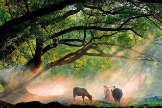 孔平仲 百里西风禾黍香,鸣泉落窦谷登场。 老牛粗了耕耘债,啮草坡头卧夕阳。 注]孔平仲:宋代地方官吏,多次遭到贬谪。 ①此诗很像一幅古代农村风俗画。清初画家曾借此题画。诗人做过地方官吏,熟悉农村情况。他多遭贬谪,厌倦官场,正好借这乡村的野朴淘洗心情,抒发胸中的积郁。②窦:水道,水沟。③粗了:刚了结。 1.一、二两句,勾勒出了农村 的景象。(2分) 2.三、四两句取象老牛,诗家评说“用意很深”。对诗人的“用意”,你是怎样理解的?(4分) 参考答案 1.丰收(2分) 2.诗人借刚释重负、卧坡吃草的老牛抒发内心的郁闷:自己仕途坎坷,官场劳顿,何异于老牛的耕耘之债?然而老牛的役债有了结的时日,而自己何尝不想卸却重负,舒闲疲惫的心呢。 注释 ①禾黍:禾与黍。泛指黍稷稻麦等粮食作物。 ②鸣泉:淙淙鸣响的泉水。 ③ 窦:此指水沟。 ④ 了:了却。 ⑤ 啮(niè):同“嚼”,啃、咬。原作“齧”。 译文 阵阵西风,吹过平原,带来了禾黍的芳香;溅溅流泉,泻入沟渠,打谷场上一片繁忙。只有它———经过了一年辛勤耕耘的老牛,闲适地躺在山坡上,嚼着草,沐浴着金色的夕阳。 创作背景 作者孔平仲曾多次遭受贬谪,做过地方官吏。对农村的熟悉与了解,使他能够真切而生动地描绘出农村风光;而对官场的厌倦情绪,也正好借这野朴的乡村风俗得到淘洗与宽慰。 ![]() 赏析: 《禾熟》是宋代诗人孔平仲创作的一首七言绝句。诗前两句切题,写西风频吹,秋收的季节已经到来,禾黍飘香,秋水清澈,淙淙地泻入沟渠中,稻谷已收割,打谷场上一派繁忙景象。第三句直写老牛,不忘老牛辛勤耕耘的劳苦,有称赞老牛的意思,又存有悯惜老牛的意思。末句写老牛的闲适,归纳全诗,扣紧“禾熟”。诗从极热闹的打谷场上,转到极安逸的老牛身上,对比鲜明;而通过这一闹一静,浮现了一派丰收的喜悦气氛。 首句“百里西风禾黍香”,大笔勾勒出农村金秋季节的画面。诗人或骑马、或乘车、或登高,放目四野,百里农田尽收眼底。那结满累累果实的稻谷黍粱,在西风吹拂下,波翻浪涌,香气袭人。面对此境,诗人为之深深陶醉。 “鸣泉落窦谷登场”一句,诗人收束目光,由阔大之景集中到泉水沟窦和一派繁忙景象的打谷场上。“鸣泉落窦”是眼前所见。淙淙流泉落于溪潭之上,发出清越的响声,与打谷场上繁忙的声响交杂一起,构成一幅喜人的农村秋景。李文渊《赋得四月清和雨乍晴》有“熏风到处田禾好,为爱农歌驻马听”之句,虽然写的是春景,但意境与此诗颇有相同之处,可以互相参阅。 “老牛粗了耕耘债,啮草坡头卧夕阳。”诗人的目光离开了繁忙的谷场,注目坡前,看到了刚释重负、横卧坡头啮草的老牛。这是一幅非常富有农村特色的画面:其景致的野朴,其风韵的淡远,传神写照。诗的主旨是通过对老牛的赞赏,抒发长期蕴积胸中的郁闷之情。诗人仕宦的坎坷,官场生活的劳苦,就如同老牛的“耕耘之债”一样。然而老牛的役债终有了结的时日,而他也希望尽早了却役债、像老牛那样释却重负、舒闲一下长期疲惫的心灵。 古人描写农事、抒发感怀的诗有不少。如王维“农月无闲人,倾家事南亩”(《新晴晚望》);元稹“农收村落盛,社树新团圆”(《古社诗》);欧阳修“田荒溪流入,禾熟雀声喧”(《陪府中诸官游城南》);朱熹“农家向东作,百事集柴门”(《残腊》),但都不如孔平仲此诗抒情之深沉。 这首诗风格清新自然,尽管用意深,却如同随意写来,不加雕琢,一切全在有意无意之间随意点出。 作者简介 孔平仲,北宋诗人。字毅父,临江新淦(今江西新干)人。1065年(治平二年)进士。为秘书丞,集贤校理。出知衡州,转任韶州。宋徽宗即位,召为户部员外郎,迁金部郎中,提举永兴路刑狱,任职于邝延、环庆。因朝廷党争被罢免。与兄孔文仲、孔武仲均以文章著名,合称“清江三孔”,有《清江三孔集》。著有《续世说》、《孔氏谈苑》、《珩璜新论》等。