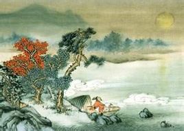 阎选 江水沉沉帆影过,游鱼到晚透寒波。渡口双双飞白鸟,烟袅,芦花深处隐渔歌。 扁舟短棹归兰浦,人去,萧萧竹径透青莎。深夜无风新雨歇,凉月,露迎珠颗入圆荷。 注释 (1)沉沉:深沉。 (2)烟袅:云烟缭绕。袅,形容烟之状态。 (3)棹:船桨。 兰浦:意思是长着兰草的水边。浦,水边。 (4)萧萧:风声,也指草木摇落声。 莎(suō):莎草,多年生草本植物,地下的块根称“香附子”,可入药。 参考译文 江水深沉,船帆的影子在江面上划过。水中的鱼从早到晚在寒冷的江波中游动,渡口那边飞起了成双成对的白鸟。云烟四处缭绕,渔人唱着渔歌在芦苇丛的深处隐去。 用短桨划着小船回到长着兰草的水边,人就这样离去了。小路上的竹林被风吹得不断作响,路上长满了青色的莎草。到了深夜,风停了,雨也停了。月亮照在寒冷的天上,露珠一颗颗滚入荷叶里面。 作者 阎选,生卒年不详。为五代时期后蜀(934年——965年)平民,酷爱小词,以词作供奉南唐后主,被世人称为“阎处士”。 ![]() 赏析: 江水沉沉,白鸟双飞,枫叶芦花,征帆渐远。“人去”之后,惟见园荷滴露,冷月照人,莎满荒径,凄凉冷落。晚清著名文学家俞陛云在《唐五代两宋词选释》中评注:“此词纯是写景,惟‘人去’二字见本意。在陆则莎满径荒,在水则露寒月冷,一片萧寥之状,殆有感于王根,樊重之家,一朝零落,人去堂空,作者如燕子归来凭吊耶?”这首词着意描绘了萧索的秋景。通过景物描写,委婉含蓄地流露了诗人的无限感怀。