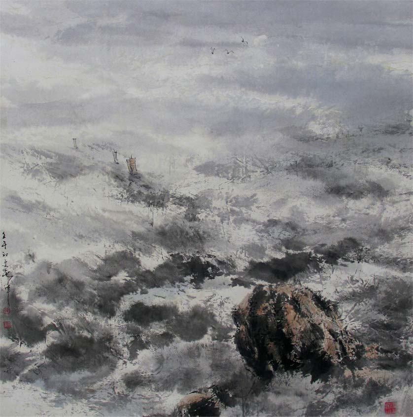 [译文] 狂风掀起巨浪,好像要把海吹得直立起来;浙东的雨仿佛都飞过钱塘江这边来了。 [出自] 北宋 苏轼 《有美堂暴雨》 游人脚底一声雷,满座顽云拨不开。 天外黑风吹海立,浙东飞雨过江来。 十分潋滟金尊凸,千杖敲铿羯鼓催。 唤起谪仙泉洒面,倒倾鲛室泻琼瑰。 ![]() 注释: 有美堂:嘉祐二年(1057),梅挚出知杭州,仁宗皇帝亲自赋诗送行, 中有“地有吴山美,东南第一州”之句。梅到杭州后,就在吴山顶上建有美堂以见荣宠。欧阳修曾为他作《有美堂记》。 顽云:犹浓云。 潋滟(音敛艳):水波相连貌。凸:高出。 敲铿:啄木鸟啄木声,这里借指打鼓声。 羯(音竭)鼓:羯族传入的一种鼓。 谪仙:被贬谪下凡的仙人,指李白。贺知章曾赞美他为谪仙人。唐玄宗曾谱新曲,召李白作词。白已醉,以水洒面,使之清醒后,即时写了多篇。 鲛室:神话中海中鲛人所居之处,这里指海。 琼瑰:玉石。 译文: 雷电仿佛从地面震响,浓云低压厚重。黑风卷起海浪,大雨由东面的钱塘江飞驰过来。江水汹涌,如杯中酒水马上就要溢出杯面,雨点有如千万只鼓槌敲打羯鼓一样急促。这是上天降大雨要唤醒李白的诗兴,倾注不息的大雨就是倾倒鲛室而滚出的粒粒珍珠。 赏析: 《有美堂暴雨》,宋代苏轼诗作,诗云:“游人脚底一声雷,满座顽云拨不开。天外黑风吹海立,浙东飞雨过江来。十分潋滟金尊凸,千杖敲铿羯鼓催。唤起谪仙泉洒面,倒倾鲛室泻琼瑰。”此诗极为生动地展现暴雨由远而近、横跨大江、呼啸奔来的壮观景象。 这首《有美堂暴雨》是苏轼即景诗中的力作之一。有美堂,为宋仁宗嘉祐二年(1057)杭州太守梅挚所建,在杭州吴山最高处,左眺钱江,右瞰西湖。堂名“有美”,是因宋仁宗赐梅挚诗句“地有吴山美,东南第一州”而取的。欧阳修曾作《有美堂记》,时人也纷纷吟诗作文题吟此堂。《有美堂暴雨》是苏轼于宋神宗熙宁六年(1073)初秋作。诗以雄奇的笔调、新妙的语言有声有色地摹写了诗人于有美堂所见骤然而至的急雨之景。 开篇“游人脚底一声雷,满座顽云拨不开”,写暴雨来临前瞬息之间的情形:雷从地起,乌云遮天。这里,不写平地一声雷起,而写一声雷突然响自游人脚底,不写乌云遮天,而写密云压顶拨不开,造语新奇,形象生动,与彼地的情景相吻合。这两句写雷云交作,旨在渲染气氛,为下文写暴雨蓄势,有“笔未至而气已吞”①之妙。 紧接着,诗人以“天外黑风吹海立,浙东飞雨过江来”两句概括地写暴雨来临时的景象:风吹海立,飞雨过江。“吹海立”,化用了杜甫“九天之云下垂,四海之水皆立”(《明献太清宫赋》)语意。诗人另有《和陶停公》诗“云屯九河,雪立三江”用以写雪,其表现手法与此相仿。这两句诗状难写之景、动态之物宛然在目,气势非凡,是脍炙人口的名句。前句写狂飙吹来,掀起滔天海浪,就像把大海吹得直立起来似的,用语奇妙,夸张而不失其真。“黑”写写足了暴风雨来临时天昏地暗的现象;“立”字,极言风势之猛,活现了海浪汹涌之貌。后句写暴雨过江(钱塘江)而至,著一“飞”字,便使急雨之态跃然纸上。从这两句诗中,我们分明可以感觉到这场暴风骤雨的磅礴气势,赫赫威力。显然,这里的暴雨与杜甫笔下的“随风潜入夜,润物细无声”(《春夜喜雨》)的绵绵春雨在美感形态上是大相径庭的:前者给人以壮美之感,后者给人以柔美之感。 如果说,“天外”两句是粗线条地勾勒暴雨来临时的景象,那么,“十分”4句则是以形象生动的语言,从不同的角度具体地续写暴雨。“十分潋滟金樽凸,千杖敲铿羯鼓催”两句,连用两个比喻写暴雨,取喻新奇贴切,分别诉诸人们的视觉与听觉形象。前句写江水高涨,似突出江岸,就仿佛是斟满了的酒溢出了杯面。这看似在写水势,其实是从侧面写暴雨,以水势烘托雨势之猛、雨量之大。因为此刻江水高涨是天降暴雨所致。后句写急骤的暴雨声就像千根鼓槌急遽地敲打着羯鼓而发出的响亮之声。用这两个比喻来写雨势、雨量、雨声,便使本来有形的暴雨更为具体,从而给人以如临其境、如闻其声之感。 “唤起谪仙泉洒面,倒倾鲛室泻琼瑰”两句,化用典故与传说,从眼前的雨景想象开去。“谪仙”,指李白,在长安时贺知章号李白为“谪仙人”。“唤”句用唐玄宗召李白赋乐府新词,时值李白醉于酒肆,玄宗便令人以水洒其面使之醒来,“即令秉笔,顷之成十余章”②之事,显得自然妥帖,无艰涩生硬之感。“鲛室”,传说南海之中有鲛人(人鱼)室,鲛人的眼泪能化为珍珠。“琼瑰”,是珍贵的玉石,诗中既指雨点,又喻诗词佳作。这两句诗是虚写暴雨。诗人展开瑰丽奇特的想象,说有美堂暴雨犹如天帝要唤醒酩酊大醉的李白赋诗而洒的清水,又似倾倒了海中的鲛人之室,使珍贵的玉石一道泻了出来。这就写出了雨点的晶莹透亮,也隐指天降暴雨之目的是要包括诗人在内的观雨者创作出诗词佳作来。诗人自己不是已写出《有美堂暴雨》这样妙语如珠的佳作来了吗?不难看出,诗人在这里写观雨者是采用了暗写,也即“于无人处见斯人”的笔法。全诗除开篇有“游人”二字出现外,可谓未曾写人,却“此中有人,呼之欲出”,虽“不露情思,而情思愈远”的。如此巧妙地写暴雨,并由雨及人,令我们击节赞赏不已。 总之,这首诗摹写有美堂暴雨奇景,从暴雨前写到暴雨中,显示出诗人于堂内观雨的过程,线索清楚,脉络分明。诗中,写动态中的霹雳、乌