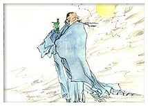 饮中八仙歌 杜甫 知章骑马似乘船,眼花落井水底眠。 汝阳三斗始朝天,道逢曲车口流涎, 恨不移封向酒泉。左相日兴费万钱, 饮如长鲸吸百川,衔杯乐圣称避贤。 宗之潇洒美少年,举觞白眼望青天, 皎如玉树临风前。苏晋长斋绣佛前, 醉中往往爱逃禅。李白一斗诗百篇, 长安市上酒家眠,天子呼来不上船, 自称臣是酒中仙。张旭三杯草圣传, 脱帽露顶王公前,挥毫落纸如云烟。 焦遂五斗方卓然,高谈雄辩惊四筵。 ![]() 【诗文解释】 贺知章酒后骑马,晃晃悠悠,如在乘船。他眼睛昏花坠入井中,竟在井底睡着了。汝阳王李琎饮酒三斗以后才去觐见天子。路上碰到装载酒曲的车,酒味引得口水直流,为自己没能封在水味如酒的酒泉郡而遗憾。左相李适为每日之兴起不惜花费万钱,饮酒如长鲸吞吸百川之水。自称举杯豪饮是为了脱略政事,以便让贤。崔宗之是一个潇洒的美少年,举杯饮酒时,常常傲视青天,俊美之姿有如玉树临风。苏晋虽在佛前斋戒吃素,饮起酒来常把佛门戒律忘得干干净净。李白饮酒十斗,立可赋诗百篇。他去长安街酒肆饮酒,常常醉眠于酒家。天子在湖池游宴,召他为诗作序,他因酒醉不肯上船,自称是酒中之仙。张旭饮酒三杯,即挥毫作书,时人称为草圣。他常不拘小节,在王公贵戚面前脱帽露顶,挥笔疾书,若得神助,其书如云烟之泻于纸张。焦遂五杯酒下肚,才得精神振奋。在酒席上高谈阔论,常常语惊四座。 【词语解释】 知章:指贺知章,诗人。 皎:洁白。 卓然:形容酒后精神焕发,不凡的样子。 四筵:四座。 汝阳:汝阳王李琎,唐玄宗的侄子。朝天:朝见天子。此谓李痛饮后才入朝。麴车.酒车。移封:改换封地。酒泉:郡名,在今甘肃酒泉县。传说郡城下有泉,味如酒。故名酒泉。 左相:指左丞相李适之,742年(天宝元年)八月为左丞相,746年四月,为李林甫排挤罢相。长鲸:鲸鱼。古人以为鲸鱼能吸百川之水,故用来形容李适之的酒量之大。衔杯:贪酒。圣:酒的代称。《三国志·魏志·徐邈传》:尚书郎徐邈酒醉,校事赵达来问事,邈言“中圣人”。达复告曹操,操怒,鲜于辅解释说:“平日醉客,谓酒清者为圣人,酒浊者为贤人。”李适之罢相后,尝作诗云:“避贤初罢相,乐圣且衔杯。为问门前客,今朝几个来?”此化用李之诗句,说他虽罢相,仍豪饮如常。 4.宗之:崔宗之,吏部尚书崔日用之子,袭父封为齐国公,官至侍御史,也是李白的朋友。觞:大酒杯。白眼:晋阮籍能作青白眼,青眼看朋友,白眼视俗人。玉树临风:崔宗之风姿秀美,故以玉树为喻。 5.苏晋:开元(唐玄宗年号)年间进士,曾为户部和吏部侍郎,长斋:长期斋戒。绣佛:画的佛像。逃禅:这里指不守佛门戒律。佛教戒饮酒。苏晋长斋信佛,却嗜酒,故曰“逃禅”。 6.李白:以豪饮闻名,而且文思敏捷,常以酒助诗兴。《新唐书·李白传》载:李白应诏至长安,唐玄宗在金銮殿召见他,并赐食,亲为调羹,诏为供奉翰林。有一次,玄宗在沉香亭召他写配乐的诗,而他却在长安酒肆喝得大醉。范传正《李白新墓碑》载:玄宗泛舟白莲地,召李白来写文章,而这时李白已在翰林院喝醉了,玄宗就命高力士扶他上船来见。 【诗文赏析】 本诗立意别出心裁,语言幽默。八个酒仙是同时代的人,又都在长安生活过,在嗜酒、豪放、豁达这些方面具有相似之处。诗人以精练的语言,人物素描的笔法,将这八人容在一首诗中,使得这幅“群像画”栩栩如生,逼真自然。 全诗幽默风趣,情调欢快;音韵上一韵到底,而结构上又层次清晰,八个人物各具特色,又异中有同。有其艺术上的独创性。 这首诗大约是天宝五载(746)杜甫初到长安时所作。史称李白与贺知章、李适之、李琎、崔宗之、苏晋、张旭、焦遂八人俱善饮,称为"酒中八仙人"。他们虽都在长安呆过,但并不是同时都在长安,杜甫从"饮酒"这个角度把他们联系在一起,全是追叙。这首诗在体裁上也是一个创格。句句押韵,一韵到底;前不用起,后不用收;并列地分写八人,句数多少不齐,但首、尾、中腰,各用两句,前后或三或四,变化中仍有条理。八人中,贺知章资格最老(比李白大41岁),所以放在第一位。其他按官爵,从王公宰相一直说到布衣。写八人醉态各有特点,纯用漫画素描的手法,写他们的平生醉趣,充分表现了他们嗜酒如命、放浪不羁的性格,生动地再现了盛唐时代文人士大夫乐观、放达的精神风貌。《唐宋诗醇》引李因笃语:"无首无尾,章法突兀妙是,叙述不涉议论,而八人身份自现,风雅中司马太史也。"《杜诗镜铨》引李子德语:"似颂似赞,只一二语,可得其人生平。" 赏析二: 《饮中八仙歌》是一首别具一格,富有特色的“肖像诗”。八个酒仙是同时代的人,又都在长安生活过,在嗜酒、豪放、旷达这些方面彼此相似。诗人以洗炼的语言,人物速写的笔法,将他们写进一首诗里,构成一幅栩栩如生的群像图。 八仙中首先出现的是贺知章。他是其中资格最老、年事最高的一个。在长安,他曾“解金龟换酒为乐”(李白《对酒忆贺监序》)。诗中说他喝醉酒后,骑马的姿态就象乘船那样摇来晃去,醉眼朦胧,眼花缭乱,跌进井里竟会在井里熟睡不醒。相传“阮咸尝醉,骑马倾欹”,人曰:“箇老子如乘船游波浪中”(明王嗣?;《杜臆》卷一)。杜甫活用这一典故,用夸张手法描摹贺知章酒后骑马的醉态与醉意,弥漫着一种谐谑滑稽与欢快的情调,惟妙惟肖地表现了他旷达纵逸的性格特征。 其次出现的人物是汝阳王李琎。他是