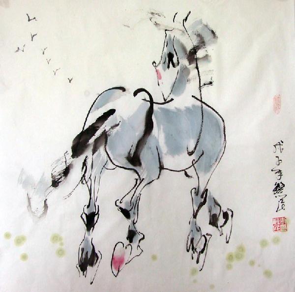 将军魏武之子孙,于今为庶为清门。 英雄割据虽已矣,文彩风流今尚存。 ![]() 注释丹青:指绘画。曹将军霸:指曹霸,唐代名画家,以画人物及马著称,颇得唐高宗的宠幸,官至左武卫将军,故称他曹将军。 魏武:指魏武帝曹操。 庶:即庶人、平民。 清门:即寒门,清贫之家。唐玄宗末年,曹霸因得罪朝廷,被削职免官。 卫夫人:即卫铄,字茂猗。晋代有名的女书法家,擅长隶书及正书。 王右军:即晋代书法家王羲之,官至右军将军。 丹青不知老将至,富贵于我如浮云:这两句是说曹霸—生精诚研求画艺甚至到了忘老的程度,同时他还看轻利禄富贵,具有高尚的情操。 开元:唐玄宗的年号,指713年——741年。 引见:皇帝召见臣属。 承恩:获得皇帝的恩宠。 南薰殿:唐代宫殿名。 凌烟:即浚烟阁,唐太宗为了褒奖文武开国功臣,于643年(贞观十七年)命阎立本等在凌烟阁画二十四功臣图。 少颜色:指功臣图像因年久而褪色。 开生面:展现出如生的面貌。 进贤冠:古代成名、文儒者的服饰。 大羽箭:大杆长箭。 褒公:即段志玄,封褒国公。 鄂公:即尉迟恭,封鄂国公。二人均系唐代开国名将,同为功臣图中的人物。 先帝:指唐玄宗,死于762年。 五花骢(cōng):唐玄宗所骑的骏马名。骢,青白色的马。 山:众多的意思。 貌不同:画得不—样,即画得不像。貌,在这里作动词用。 赤墀(chí):也叫丹墀。宫殿前的台阶。 迥(jiǒng):高。 阊(chāng)阖(hé):宫门。 诏:皇帝的命令。 意匠:指画家的立意和构思。 惨澹(dàn):费心良苦。 经营:即绘画的“经营位置,结构安排。这句是说曹霸在画马前经过审慎的酝酿,胸有全局而后落笔作画。 九重:代指皇宫,因天子有九重门。真龙、古人称马高八尺为龙,这里比喻所画的玉花骢。 圉(yǔ)人:管理御马的官吏。 太仆:管理皇帝车马的官吏。 韩干:唐代名画家。善画人物,更擅长鞍马。他初师曹霸,注重写生,后来自成一家。 穷殊相:极尽各种不同的形姿变化。 盖有神:大概有神明之助,极言曹霸画艺高超。 写真:指画肖像。 这两句是说韩干画马仅得形似,不能传神。 干戈:战争,指安史之乱。 貌:即写真。 坎壈(lǎn):贫困潦倒。 赤墀:也叫丹墀。宫殿前的台阶。 译文曹将军是魏武帝曹操后代子孙,而今却沦为平民百姓成为寒门。英雄割据的时代一去不复返了,曹家文章丰采却在你身上留存。当年为学书法你先拜师卫夫人,只恨得没有超过王羲之右将军。你毕生专攻绘画不知老之将至,荣华富贵对于你却如空中浮云。开元年间你常常被唐玄宗召见,承恩载德你曾多次登上南薰殿。凌烟阁的功臣画象年久褪颜色,曹将军你挥笔重画又别开生面。良相们的头顶都戴上了进贤冠,猛将们的腰间皆佩带着大羽箭。褒公鄂公的毛发似乎都在抖动,他们英姿飒爽好象是正在酣战。开元时先帝的天马名叫玉花骢,多少画家画出的都与原貌不同。当天玉花骢被牵到殿中红阶下,昂首屹立宫门更增添它的威风。皇上命令你展开丝绢准备作画,你匠心独运惨淡经营刻苦用功。片刻间九天龙马就在绢上显现,一下比得万代凡马皆成了平庸。玉花骢图如真马倒在皇帝榻上,榻上马图和阶前屹立真马相同。皇上含笑催促左右赏赐你黄金,太仆和马倌们个个都迷惘发怔。将军的门生韩干画技早学上手,他也能画马且有许多不凡形象。韩干只画外表画不出内在精神,常使骅骝好马的生气凋敝失丧。将军的画精美美在画中有神韵,偶逢真名士才肯为他动笔写真。而今你漂泊沦落在战乱的社会,平常所画的却是普通的行路人。你到晚年反而遭受世俗的白眼,人世间还未有人象你这般赤贫。只要看看历来那些负盛名的人,有谁不终日坎坷穷愁纠缠其身?赏析 此诗当与前诗并看,互为补充。 诗起笔洗炼,苍凉。先叙曹氏乃魏武之后,今却沦为庶人。然后颂其祖先业绩和辞采丰韵犹存于身。开首就抑扬起伏,跌宕多姿。继而写曹氏在书画上之用功进取,情操高尚。一生沉于丹青,不思富贵,不知老之将至。写 “学书”是衬托,写“丹青”是点题。主次分明,抑扬顿挫,错落有致。 “开元”八句,集中颂扬曹氏人物画的成就。“先帝”八句,细腻刻画曹氏描绘“玉花骢”的经过。 “玉花”八句,写画马的艺术魅力,竟使真假难分,并以韩干之画作为反衬。 “将军”八句,写如此精湛绝伦的画师,竟在战乱年代中落泊江湖,为画路人卖画为生,不禁发出世态炎凉之感慨,抒发自身晚年失意之怅惘。 诗在结构上错综神奇、然宾主分明。情感上抑扬起伏,摇曳多姿。诗的结句,更为历代诗人所赞赏。清代翁方纲曾称此诗为气势充盛,“古今七言诗第一压卷之作”。 这首诗也是写画马的,并直接送给画家曹霸。它着重写了画家的身世、经历,类似一首小叙事诗。全诗以画家承皇帝的宠爱命再绘凌烟阁功臣像和玉花骢马为中心,极状了曹霸当时画名的显赫,因而更衬出晚景的凄凉。这时候诗人也饱经沧桑,生活贫困,在感情上更能和曹霸互相理解。全诗写得错综多变,叙事抒情,跌宕有致,在艺术上很成功。 曹霸是盛唐著名画马大师,安史之乱后,潦倒漂泊。唐代宗广德二年(764),杜甫和他在成都相识,十分同情他的遭遇,写下这首《丹青引》。 诗起笔洗炼,苍凉。先说曹霸是魏武帝曹操之后,如今削籍,沦为寻常百姓。然后宕开一笔,颂扬曹霸祖先,曹操称雄中原的业绩虽成往史;但其诗歌的艺术造诣高超,辞采美妙,流风余韵,至今犹存。开头四句,抑扬起伏,