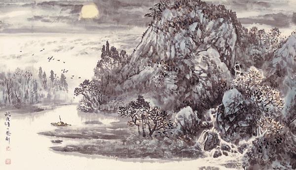 陈子昂 皎皎白林秋⑵,微微翠山静⑶。 禅居感物变⑷,独坐开轩屏⑸。 风泉夜声杂⑹,月露宵光冷⑺。 多谢忘机人⑻,尘忧未能整⑼。 注释 ⑴晖上人:大云寺僧人圆晖。赞宁《高僧传》称他“精研性相,善达诸宗”。陈子昂中进士之前与之结识。 ⑵皎皎:洁白貌;清白貌。形容月光。《诗经·小雅·白驹》:“皎皎白驹,在彼空谷。” ⑶微微:隐约,淡远,幽静的样子。 南朝梁沈约《刘真人东山还》诗:“连峰竟无已,积翠远微微。” ⑷禅居:僧人居住修行的处所。指寺院。 ⑸轩屏:窗户和门屏。 ⑹杂:一作“绝”。 ⑺月露:月光下的露滴。宵光:夜光;月光。 ⑻忘机:消除机巧之心。常用以指甘于淡泊,与世无争。忘机人,是赞美晖上人与世无争、忘却巧诈的高洁情怀。 ⑼整:理。 参考译文 月光照耀山林一片秋色,青翠山峦多么安谧幽静。 身居禅房感受万物变化,一人独坐不由打开窗门。 风响泉鸣夜声显得嘈杂,月下的寒露使夜光清冷。 向您忘机的人多多致意,尘世烦忧愧未清理干净。 名句:风泉夜声杂,月露宵光冷 这两句写秋夜山间的所见所闻——风声泉声夹杂在一起,像是在互诉衷肠;夜露降临,月照露明,其光显得冷峻。月夜景色,清幽妙丽。 ![]() 创作背景 这首诗是为酬答晖上人的赠诗而作,当作于陈子昂中进士之前,陈子昂中进士的时间是唐高宗开耀二年(682年)。 赏析 《酬晖上人秋夜山亭有赠》是唐代文学家陈子昂的诗作。此诗描绘了明净如画的山林秋夜景色,表现了作者希望自己的心情能入景清明,达到晖上人那样的境界。全诗结构精巧,浑融一体,起承转合,自然从容。 晖上人的赠诗内容不明,从此诗意推测应是与秋夜禅坐有关。因此,这首回赠诗开头从山林的幽静写起。“皎皎白林秋,微微翠山静”,秋夜的山林禅院充满了幽寂的禅意。此诗中间两联写景咏物。颔联“禅居感物变,独坐开轩屏”,住在这僧房里感到了景色的变化和季令的推移,由于心绪无比烦乱,不禁打开门扇,独坐沉思幻想起来。这里点出了晖上人的禅悟境界。禅定使人心情平静,从而智慧现前。颈联“风泉夜声杂,月露宵光冷”,描绘出一片清幽冷寂的境界,极具诗情画意,也颇具禅意。最后“多谢忘机人,尘忧未能整”二句,感叹世人不能如晖上人般忘却机心,饱受尘世烦扰,实在是无奈又可怜,表达了诗人对晖上人入景清明那种境界的追求。 此诗结构极其精巧。起承转合,自然从容。写景写人,浑融一体。陈子昂还有一首诗《同王员外雨后登开元寺南楼因酬晖上人独坐山亭有赠》,内容与此诗相关,可以互相参照。