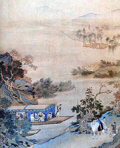 唐·陆龟蒙 陵阳佳地昔年游,谢跳青山李白楼。 惟有日斜溪上思,酒旗风影落春流。 注释 ⑴宛陵:古县名,汉初置,不久改为丹阳郡治所,西晋时改为宜城郡治所,南朝梁、陈时为南豫州治所,隋时又改为县,其地在今安徽省宣城。旧游:此处指旧日游览之地。 ⑵陵阳:山名,旧传因陵阳子明于此山成仙而得名,在今安徽省宣城北,这里用作宛陇的代称。佳地:胜地。 ⑶谢朓(tiǎo):字玄晖,南齐诗人。青山:泛指此处群山,此处的“青山’与“楼”为互文,不是分属于谢朓和李白。李白:字太白,唐代诗人。 ⑷日斜溪上:溪水倒映着斜阳。思:想,遐想。 ⑸酒旗:酒家的酒幌。 参考译文 想当年曾在宛陵城游览胜地, 谢玄晖与李太白都留下足迹。 溪水倒映斜阳实在令人遐想, 迎风飘扬的酒幌也映入小溪。 ![]() 赏析: 《怀宛陵旧游》是唐代诗人陆龟蒙创作的一首七言绝句。这是一首以写景为主的小诗,而诗的前两句却插入了作者的回忆与山水诗人谢眺及大诗人李白的事迹,这就在没有具体写景之前,给宛陵的山水染上一层重重的神秘色彩。诗人在后两句写景时,抓住了夕阳与随风飘扬的酒家的酒幌都映入溪水这一特点,充满了诗情画意。同时又点明了时间、地点,表现了诗人放浪不羁的性格。这首诗语言优美流畅,音调和谐。 这是一首山水诗,但不是即地即景之作,而是诗人对往年游历的怀念。宛陵三面为陵阳山环抱,前临句溪、宛溪二水,绿水青山,风景佳丽。南齐诗人谢朓曾任宣城太守,建有高楼一座,世称谢公楼,唐代又名叠嶂楼。盛唐诗人李白也曾客游宣城,屡登谢公楼畅饮赋诗。大概是太白遗风所致,谢公楼遂成酒楼。陆龟蒙所怀念的便是有着这些名胜古迹的江南小城。 这首诗的佳处不止在描摹山水如画,更在于溶化着诗人深沉的感慨。通观全诗,前二句是平叙宛陵旧游的怀念,说自己从前曾到陵阳山的那个好地方游历,那里有谢朓、李白的游踪遗迹。后二句是回忆当年留下的最深刻的印象:傍晚,在句溪、宛溪旁缓步独行,夕阳斜照水面,那叠嶂楼的倒影映在水中,它那酒旗仿佛飘落在春天流水中。那情景,最惹人思绪了。惹起的思绪是什么,惹起思绪的原因是什么,诗人没有说,也无须说破。前二句既已点出了诗人仰慕的谢朓、李白,后二句描摹的这帧山水图所蕴含的思绪感慨,不言而喻,是与他们的事迹相联系的。 谢朓出任宣城太守时,很不得意,“江海虽未从,山林于此始”(《始之宣城郡》)。李白客游宣城,也是牢骚满腹,“抽刀断水水更流,举杯销愁愁更愁”(《宣州谢朓楼饯别校书叔云》)。然而谢朓毕竟还有逸兴,李白更往往是豪游,青青的陵阳山上,那幢谢朓所筑、李白酣饮的高楼,确令人思慕向往。而自己一介布衣,没没无闻,虽然也游过这陵阳佳地,却不能为它再增添一分风韵雅胜。于个人,他愧对前贤;于时世,他深感没落。因此,回想当年旧游,只有那充满迷惘的时逝世衰的情景,给他难忘的深刻印象。这就是西斜的落日,流去的春水,晚风中飘摇的酒旗,流水中破碎的倒影,构成一幅诗意的画境,惹引无限感慨的思绪。由此可见,这首怀念旧游的山水诗,实质上是咏怀古迹、感时伤世之作。 这首诗的艺术特色显然在于炼词铸句,熔情入景,因而风物如画,含蓄不尽。前二句点出时间、地点,显出名胜、古迹,抒发了怀念、思慕之情,语言省净,含意丰满,形象鲜明,已充分显示诗人老到的艺术才能。后二句深入主题,突出印象,描写生动,以实见虚,在形似中传神,堪称“画本”,而重在写意。李商隐《锦瑟》中“此情可待成追忆,只是当时已惘然”的那种无望的迷惘,在陆龟蒙这首诗里得到了十分相似的表露。也许这正是本诗的时代特色。诗歌艺术朝着形象地表现某种印象、情绪的方向发展,在晚唐是一种相当普遍的趋势,这诗即其一例。
