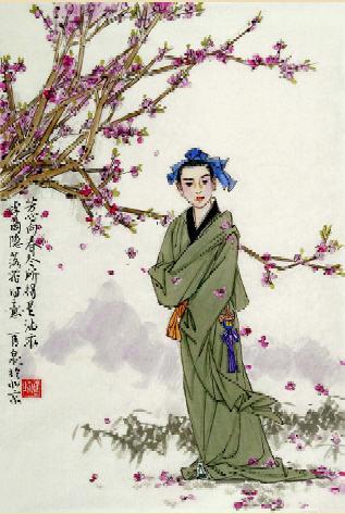注解: 1、参差:指花影的迷离,承上句乱飞意。 2、芳心:指花,也指自己看花的心意。 3、沾衣:指流泪。 韵译: 高阁上的游客们已经竞相离去; 小园的春花随风凋零纷纷乱飞。 花影参差迷离接连着弯弯小径; 远望落花回舞映着斜阳的余晖。 我的肝肠欲断不忍把落红扫去; 望眼欲穿盼来春天却匆匆回归。 爱花惜花自然要怨春去得太早; 春尽花谢所得的只是落泪沾衣。 赏析: 这是一首专咏落花的诗。首联写落花与人的心情,含蓄蕴籍耐人寻味。颔联从不同角度描写落花乱飞的具体情状。颈联直接抒发情感,巴望花不再落而不能。末联写花为装点春天而开,却落得飘零沾衣的结局。表达了素怀壮志,不见用于世的凄婉和感慨。全诗洋溢着伤春惜花之感,情思如痴,委婉动人。 李商隐作诗,一向以善于用典、精于藻饰闻名。但他也有用语质朴、风格淡雅的佳作,本诗就是其中之一。本诗为咏物诗,作于唐武宗会昌六年(846年),当时诗人为母守孝,正闲居永业,又因陷入牛李党争之中,处境困难,因此心绪不宁。他忧愁怨恨的心情在本诗中即有所表露。诗人借咏落花的飘零,抒写自己身世之感,抒发自己一生失意的幽怨。全诗忧郁悲凉,曲折深婉。 首联上句叙事,下句写景。客人们陆续离开,人去楼空,满园静寂,诗人才注意到四散的落花,顿生同病相怜之心,寂寞惆怅的愁绪也涌上了心头。因本诗人描写落花,实际是为了引出本诗的主旨——愁思。 颔联从多种角度描写落花的情状。上句从空间入手:落花在空中飞舞,参差的花枝连着弯曲的小路;下句从时间着眼:落花绵绵不断,无休无止。对“斜晖”的点染,折射出诗人内心的不安。整个画面色调黯淡,充满了沉重感,流露出一种悲伤的情绪。 颈联,诗人直抒胸臆。“肠断未忍扫”:诗人肝肠寸断也不忍心清扫落花,这并不是一般的惜花之情,而是一种复杂的、难以言表的情绪。诗人以花自比,望花自伤,自然就难以将落花彻底扫为垃圾尘土。而“眼穿仍欲稀”一句表露出诗人的痴心与坚定。 尾联意蕴深藏:花朵用自己短暂而绚烂的一生装点了春天,最后却落得凋残、衰败的下场;诗人满怀抱负,却一生坎坷、屡屡碰壁,结局也是凄凉悲苦、令人同情。 全诗语言清淡疏朗,诗人咏物伤己,以物喻己,感伤无尽。