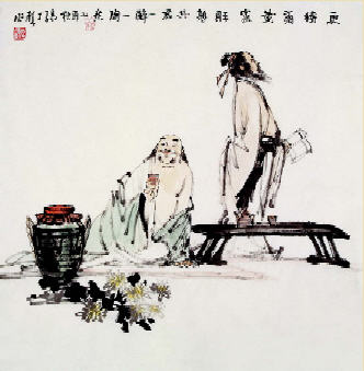 白居易 少时犹不忧生计, 老后谁能惜酒钱? 共把十千沽一斗, 相看七十欠三年。 闲征雅令穷经史, 醉听清吟胜管弦。 更待菊黄家酝熟, 共君一醉一陶然。 翻译: 年轻时尚且不担忧生计,到老来谁又会吝惜几个酒钱? 我们一起买来名贵的酒,举杯共饮;两相对看,你我距七十岁都只差三年。 闲饮中,我们征引经史文句以行酒令;醉意中,我们吟诵诗句,胜过那管弦之乐。 等到秋后菊黄,家酿的美酒熟了之时,我和你再一醉方休,共享那陶然之乐。 ![]() 白居易写此诗时,刘禹锡也在洛阳,任太子宾客分司。当时两人任的都是闲职。诗题的意思是:我与梦得买酒闲饮,并约定今后相会之期。 句 解 少时犹不忧生计,老后谁能惜酒钱 年轻时尚且不担忧生计,到老来谁又会吝惜几个酒钱?首联直抒慨叹。从“少时”到“老后”,是对平生的回顾,蕴含着一丝悲怆的身世之感。“少时”句,写出年轻时的稚气与豪气;“老后”句,流露出饱经沧桑、阅尽世情冷暖的暮气。 共把十千沽一斗,相看七十欠三年 我们一起买来名贵的酒,举杯共饮;两相对看,你我距七十岁都只差三年。白、刘二人都曾经历坎坷,又都是狂放通达之人。于上句中,可见出诗友聚会时的豪情;下句转为顿挫,骨子里有凄凉沉痛之意。白、刘同生于公元七七二年,此时都已六十七岁,故谓“七十欠三年”。两两“相看”之下,看到了什么?首先自然是容貌,白发苍苍,皱纹满面。杜诗说“人生七十古来稀”,青春固然难留,而来日竟已不多。这怎能不让人感慨万千?因此,“相看”的背后,实际上包含着人生浮沉、岁月无情的复杂感情。“十千”,即十千钱,借以形容酒的名贵。“斗”,古代酒以升斗论量。 闲征雅令穷经史,醉听清吟胜管弦 闲饮中,我们征引经史文句以行酒令;醉意中,我们吟诵诗句,胜过那管弦之乐。这一联,具体描写出诗题中所说“闲饮”情状,与诗人的身份、处境极其相符。因为是文人,故闲中有雅趣;因为年老,闲雅之中便有了清逸淡然之风。应该说,这是人生的另一种境界,是精神世界的自得其乐与极大满足。这里的“醉”,似醉而非真醉。与其说是醉于美酒,不如说是醉于心。一般的丝竹可以悦耳动听,却无法像知己那样心灵相契,获得感情上的慰藉与共鸣。“雅令”,典雅的酒令。“穷”,穷尽,此言广征博引。“清吟”,指吟咏诗句,自得其乐。 更待菊黄家酝熟,共君一醉一陶然 等到秋后菊黄,家酿的美酒熟了之时,我和你再一醉方休,共享那陶然之乐。尾联写“约后期”,把眼前的聚会引向未来,把友情和诗意推向高峰。“家酝”,自家酿造的酒。与“沽酒”相比,又进了一层,让人倍觉亲切与醇美。故虽是写酒,而实是道情。 评 解 白居易晚年大部分时间都在东都洛阳,过着他的“中隐”生活,这一时期的诗作也以“闲适诗”为主。这首诗就是其中的代表。 两位性情趣味相投的老朋友,在一起诗酒相娱,将前生不快之事尽抛脑后,纵情安享晚年余生,“共君一醉一陶然”,纯然闲雅情怀。超脱如陶渊明,而惬意则过之。全诗言简意富,语淡情深,通篇用赋体却毫不平板呆滞,见出炉火纯青的艺术功力。 刘禹锡读过此诗后,以《乐天以愚相访沽酒致欢,因成七言聊以奉答》相应和,诗云:“少年曾醉酒旗下,同辈黄衣颔亦黄。蹴踏青云寻入仕,萧条白发且飞觞。令征古事欢生雅,客唤闲人兴任狂。犹胜独居荒草院,蝉声听尽到寒螿。” 赏析: 开成二年(837),白居易和刘禹锡同在洛阳,刘任太子宾客分司,白任太子少傅,都是闲职。政治上共遭冷遇,使两位挚友更为心心相印了。诗题中“闲饮”二字透露出诗人寂寞而又闲愁难遣的心境。 前两联,字面上是抒写诗友聚会时的兴奋,沽酒时的豪爽和闲饮时的欢乐,骨子里却包涵着极为凄凉沉痛的感情。 从“少时”到“老后”,是诗人对自己生平的回顾。“不忧生计”与不“惜酒钱”,既是题中“沽酒”二字应有之义,又有政治抱负与身世之感隐含其中。“少时”二字使人想见诗人少不更事时的稚气与“初生之犊不畏虎”的豪气。“老后”却使人联想到那种阅尽世情冷暖、饱经政治沧桑而身心交瘁的暮气了。诗人回首平生,难免有“早岁那知世事艰”的感慨。 “共把”一联承上启下,亦忧亦喜,写神情极妙。“十千沽一斗”是倾注豪情的夸张,一个“共”字使人想见两位老友争相解囊、同沽美酒时真挚热烈的情景,也暗示两人有相同的处境,同病相怜,同样想以酒解闷。“相看”二字进而再现出坐定之后彼此端详的亲切动人场面。白、刘都生于公元七七二年,时年均已六十七岁,亦即“七十欠三年”。两位白发苍苍的老人,两张皱纹满面的老脸,面面相觑,怎能不感慨万千?朋友的衰颜老态,也就是自己的一面镜子,怜惜对方也就是怜惜自己。在这无言的凝视和含泪的微笑之中,包含着多少宦海浮沉、饱经忧患的复杂感情。 “闲征”一联,具体描写“闲饮”的细节和过程,将题中旨意写足。这里的“闲”是身闲而心未尝闲,借知识的游戏来怡情养性是假,排遣寂寞无聊才是真。虽有高雅芳洁的情怀、匡时救世的志向和满腹经纶的才学,却只能引经据史,行行酒令,虚掷时光,这不是仁人志士的不幸吗?这里的“醉”,似醉而非真醉;与其说是醉于“十千沽一斗”的美酒,不如说是醉于“胜管弦”的“清吟”,虽然美酒可以醉人,却不能醉心,一般的丝竹可以悦耳动听,却无法象知己的“清吟”那样奏出心灵的乐