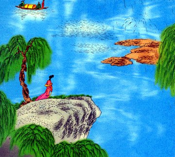 “杨柳青青江水平,闻郎江上唱歌声”的诗意:江边的杨柳青青,垂着绿色枝条,水面平静,忽然听到江面上情郎唱歌的声音。 出自唐朝诗人刘禹锡《竹枝词》 杨柳青青江水平,闻郎江上踏歌声。 东边日出西边雨,道是无晴却有晴。 参考译文 江边的杨柳青青,垂着绿色枝条,水面平静,忽然听到江面上情郎唱歌的声音。东边出着太阳,西边还下着雨,说是没有晴天吧,却还有晴的地方。 ![]() 赏析 《竹枝词二首》是唐代文学家刘禹锡的组诗作品。刘禹锡传世作品中,有竹枝词十一首,分两组,这两首诗是其中一组。这首诗写的是一位沉浸在初恋中的少女的心情。她爱着一个人,可还没有确实知道对方的态度,因此既抱有希望,又含有疑虑;既欢喜,又担忧。诗人用她自己的口吻,将这种微妙复杂的心理成功地与以表达。 描写青年男女爱情的诗歌。它描写了一个初恋的少女在杨柳青青、江平如镜的清丽的春日里,听到情郎的歌声所产生的内心活动。 首句“杨柳青青江水平”,描写少女眼前所见景物,用的是起兴手法。所谓“兴”,就是触物起情,它与后文要表达的情事。并无直接关系,但在诗中却是不可少的。这一句描写的春江杨柳,最容易引起人的情思,于是很自然地引出了第二句:“闻郎江上唱歌声”。这一句是叙事,写这位少女在听到情郎的歌声时起伏难平的心潮。最后两句“东边日出西边雨,道是无晴却有晴”,是两个巧妙的隐喻,用的是语意双关的手法。“东边日出”是“有晴”,“西边雨”是“无晴”。“晴”和“情”谐音,“有晴”、“无晴”是“有情”、“无情”的隐语。“东边日出西边雨”,表面是“有晴”、“无晴”的说明,实际上却是“有情”、“无情”的比喻。这使这个少女听了,真是感到难以捉摸,心情忐忑不安。但她是一个聪明的女子,她从最后一句辨清了情郎对她是有情的,因为句中的“有”、“无”两字中,着重的是“有”。因此,她内心又不禁喜悦起来。这句用语意双关的手法,既写了江上阵雨天气,又把这个少女的迷惑、眷恋和希望一系列的心理活动巧妙地描绘出来。 此诗以多变的春日天气来造成双关,以“晴”寓“情”,具有含蓄的美,对于表现女子那种含羞不露的内在感情,十分贴切自然。最后两句一直成为后世人们所喜爱和引用的佳句。 这种根据汉语语音的特点而形成的表现方式,是历代民间情歌中所习见的。它们是谐声的双关语,同时是基于活跃联想的生动比喻。它们往往取材于眼前习见的景物,明确地但又含蓄地表达了微妙的感情。如南朝的吴声歌曲中就有一些使用了这种谐声双关语来表达恋情。如《子夜歌》云:“怜欢好情怀,移居作乡里。桐树生门前,出入见梧子。”(欢是当时女子对情人的爱称。梧子双关吾子,即我的人。)又:“我念欢的的,子行由豫情。雾露隐芙蓉,见莲不分明。”(的的,明朗貌。由豫,迟疑貌。芙蓉也就是莲花。见莲,双关见怜。)《七日夜女歌》:“婉娈不终夕,一别周年期,桑蚕不作茧,昼夜长悬丝。”(因为会少离多,所以朝思暮想。悬丝是悬思的双关。) ![]() 这类用谐声双关语来表情达意的民间情歌,是源远流长的,自来为人民群众所喜爱。作家偶尔加以摹仿,便显得新颖可喜,引人注意。刘禹锡这首诗为广大读者所爱好,这也是原因之一。
