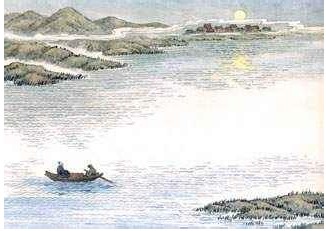 “估客昼眠知浪静,舟人夜语觉潮生。”这两句是说,诗人乘舟江行,同船的商人白昼间临窗倚枕,酣然入梦,可知此刻江上扬帆,风平浪静;夜深人静,忽闻船夫互相呼唤,杂着扣弦结缆之声,而知夜半涨起江潮来了。对仗工整,内涵深刻,含蓄蕴藉。这一联明写诗人旅途中的所见所闻,暗写他昼夜难眠的纷乱思绪。一昼一夜,两种景象,体察入微,简笔勾勒,意脉相连,透露出诗人昼夜不宁的纷乱思绪,读来如临其境,如见其人。 出自卢纶《晚次鄂州》 云开远见汉阳城,犹是孤帆一日程。 估客昼眠知浪静,舟人夜语觉潮生。 三湘愁鬓逢秋色,万里归心对月明。 旧业已随征战尽,更堪江上鼓鼙声! 估客:同船的商人。 昼:白天。 舟人:船家。 潮生:涨潮。 【参考译文】 浓云散开,远远地可以看见汉阳城,但是行船漂流还要一天的路程。商人知道白天浪静安然入睡,船夫在夜间说话感到潮水涨了上来。三湘时值寒秋,两鬓生出了白发,离家万里望见明月思归的心更深切。家产已经随着战乱毁坏殆尽,哪能忍受再听见江上的鼓角声。 ![]() 赏析 《晚次鄂州》是唐代诗人卢纶的作品。此诗只截取飘泊生活中的片断,却反映了广阔的社会背景。首联写“晚次鄂州”的心情,颔联写“晚次鄂州”的景况,颈联写“晚次鄂州”的联想,尾联写“晚次鄂州”的感慨。诗中流露厌战,伤老,思归之情。全诗淡雅而含蓄,平易而炽热,反复咏育,舒畅自若,韵味无穷。 《全唐诗》于本篇题下注“至德中作”,时当在安史之乱的前期。由于战乱,诗人被迫浪迹异乡,流徙不定。在南行途中,他写了这首诗。 首联写“晚次鄂州”的心情。浓云散开,江天晴明,举目远眺,汉阳城依稀可见,因为“远”,还不可及,船行尚须一天。这样,今晚就不得不在鄂州停泊了。诗人由江西溯长江而上,必须经过鄂州(治所在今湖北武汉市武昌),直抵湖南。汉阳城在汉水北岸,鄂州之西。起句即点题,述说心情的喜悦,次句突转,透露沉郁的心情,用笔腾挪跌宕,使平淡的语句体现微妙的思致。诗人在战乱中风波漂泊,对行旅生涯早已厌倦,巴不得早些得个安憩之所。因此,一到云开雾散,见到汉阳城时,怎能不喜。“犹是”两字,突显诗人感情的骤落。这二句,看似平常叙事,却仿佛使人听到诗人在拨动着哀婉缠绵的琴弦,倾诉着孤凄苦闷的心曲,透纸贯耳,情韵不匮。 次联写“晚次鄂州”的景况。诗人简笔勾勒船舱中所见所闻:同船的商贾白天水窗倚枕,不觉酣然入梦,不言而喻,此刻江上扬帆,风平浪静;夜深人静,忽闻船夫相唤,杂着加缆扣舷之声,不问而知夜半涨起江潮来了。诗人写的是船中常景,然而笔墨中却透露出他昼夜不宁的纷乱思绪。所以尽管这些看惯了的舟行生活,似乎也在给他平增枯涩乏味的生活感受。 三联写“晚次鄂州”的联想。诗人情来笔至,借景抒怀:时值寒秋,正是令人感到悲凉的季节,无限的惆怅已使我两鬓如霜了;我人往三湘去,心却驰故乡,独对明月,归思更切!“三湘”,指湖南境内,即诗人此行的目的地。而诗人的家乡则在万里之遥的蒲州(今山西永济)。秋风起,落叶纷下,秋霜落,青枫凋,诗人无赏异地的秋色之心,却有思久别的故乡之念。一个“逢”字,将诗人的万端愁情与秋色的万般凄凉联系起来,移愁情于秋色,妙合无垠。“万里归心对月明”,其中不尽之意见于言外,有迢迢万里不见家乡的悲悲戚戚,亦有音书久滞萦怀妻儿的凄凄苦苦,真可谓愁肠百结,煞是动人肺腑。 末联写“晚次鄂州”的感慨。为何诗人有家不可归,只得在异域他乡颠沛奔波呢?最后二句,把忧心愁思更深入一层:田园家计,事业功名,都随着不停息的战乱丧失殆尽,而烽火硝烟未灭,江上不是仍然传来干戈鸣响,战鼓声声?诗人虽然远离了沦为战场的家乡,可是他所到之处又无不是战云密布,这就难怪他愁上加愁了。诗的最后两句,把思乡之情与忧国愁绪结合起来,使本诗具有更大的社会意义。 这首诗,诗人只不过截取了飘泊生涯中的一个片断,却反映了广阔的社会背景,写得连环承转,意脉相连,而且迂徐从容,曲尽情致。在构思上,不用典故来支撑诗架;在语言上,不用艳藻来求其绮丽;在抒情上,不用泼墨来露出筋骨。全诗淡雅而含蓄,平易而炽热,读来觉得舒畅自若,饶有韵味。