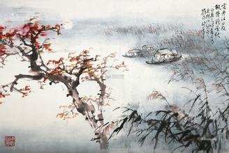 “不知江月待何人,但见长江送流水”这两句是说,人生代代相继,江月年年如此。一轮孤月徘徊中天,像是在等待什么人,却永远不能如愿;月光下,只有滚滚大江,急急奔腾远去。春江流水,隐含着离别相思的情怀和人生短暂的感慨。清丽婉转,意蕴深沉。 出自张若虚《春江花月夜》 春江潮水连海平,海上明月共潮生。 滟滟随波千万里,何处春江无月明。 江流宛转绕芳甸,月照花林皆似霰。 空里流霜不觉飞,汀上白沙看不见。 江天一色无纤尘,皎皎空中孤月轮。 江畔何人初见月?江月何年初照人? 人生代代无穷已,江月年年望相似。 不知江月待何人,但见长江送流水。 白云一片去悠悠,青枫浦上不胜愁。 谁家今夜扁舟子?何处相思明月楼? 可怜楼上月徘徊,应照离人妆镜台。 玉户帘中卷不去,捣衣砧上拂还来。 此时相望不相闻,愿逐月华流照君。 鸿雁长飞光不度,鱼龙潜跃水成文。 昨夜闲潭梦落花,可怜春半不还家。 江水流春去欲尽,江潭落月复西斜。 斜月沉沉藏海雾,碣石潇湘无限路。 不知乘月几人归,落月摇情满江树。 月轮:指月亮,因为月圆时象车轮,所以称为月轮。 穷已:穷尽。 江月年年只相似:另一种版本为“江月年年望相似”。 但见:只见、仅见。 悠悠:渺茫、深远。 青枫浦上:青枫浦 地名 今湖南浏阳县境内有青枫浦。这里泛指游子所在的地方。 浦上:水边。 扁舟:孤舟,小船。 明月楼:月夜下的闺楼。这里指闺中思妇。 月徘徊:指月光移动。 ![]() 赏析 被誉为“诗中的诗,顶峰上的顶峰”(闻一多《宫体诗的自赎》)的七言古诗《春江花月夜》,千百年来,使无数读者倾倒。一生仅留下两首诗的张若虚,也因这一首千古名篇,“孤篇横绝,竟为大家。”春、江、花、月、夜五种事物集中体现了人生最动人的良辰美景,构成了具有强烈吸引力的奇妙的艺术境界,写得景物清丽,意境深远,韵律和谐婉转,语言优美流畅,极富音乐之美。 全诗三十六句,每四句一换韵,以富有生活气息的清丽之笔,创造性地再现了江南春夜的景色,如同月光照耀下的万里长江画卷,同时寄寓着游子思妇的离别相思之苦。诗篇意境空明,缠绵悱恻,洗净了六朝宫体的浓脂腻粉,词清语丽,韵调优美,脍炙人口。