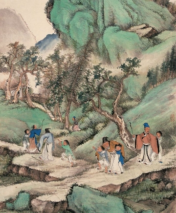 “桑柘影斜春社散,家家扶得醉人归。”这两句写社散后的情况——太阳西下,桑树和柘树的影子已经斜了,天色已晚;春社散后,人声渐稀,到处可见喝得醉醺醺的人们,由家人或邻里搀扶着回家。诗句不正面写庆祝活动的热闹欢乐场景,却用特写镜头选取高潮之后的尾声来表现它,匠心别致,手法含蓄,回味深长,生活情趣极浓,历来脍炙人口。 出自王驾《社日》 鹅湖山下稻粱肥,豚棚鸡栖半掩扉。 桑柘影斜春社散,家家扶得醉人归。 桑柘(zhè):桑树和柘树,这两种树的叶子均可用来养蚕。影斜:树影倾斜,太阳偏西。春社散:春设的聚宴已经散了。 醉人:喝醉酒的人。 参考译文 鹅湖山下稻梁肥硕,丰收在望。牲畜圈里猪肥鸡壮,门扇半开。 夕阳西沉,桑柘树林映照出长长的阴影。春社结束,家家搀扶着醉倒之人归来。 ![]() 赏析 《社日》是诗人王驾(一作张演)创作的一首七绝。此诗写了鹅湖山下的一个村庄社日里的欢乐景象,描绘出一幅富庶、兴旺的江南农村风俗画。全诗虽没有一字正面描写社日的情景,却表达出了社日的热闹欢快,角度巧妙,匠心独运。 王驾进士及第之后,官至礼部员外郎,后弃官归隐。此诗作于其归隐之后。 古时的春秋季节有两次例行的祭祀土神的日子,分别叫作春社和秋社。王驾这首《社日》虽没有一字正面描写作社的情景,却描绘出了这个节日的欢乐。 “鹅湖山下稻粱肥,豚栅鸡栖半掩扉。”诗的一开始不写“社日”的题面,却从村居风光写起。鹅湖山这地名本身很诱人,湖的名字使人想到鹅鸭成群,鱼虾满塘,一派山明水秀的南方农村风光。春社时属仲春,田里庄稼丰收在望,村外风光如此迷人,而村内到处是一片富裕的景象,猪满圈,鸡栖埘,联系第一句描写,描绘出五谷丰登、六畜兴旺的景象。只字未提作社的事,先就写出了节日的喜庆气氛。这两句也没有写到村居的人,“半掩扉”三字暗示村民都不在家,门儿都半掩着。古人常用“夜不闭户”表示环境的太平安宁,“半掩”而不上锁,可见民风淳厚,丰年富足,这个细节描写是极有表现力的。同时,它又暗示出村民家家参加社日,巧妙地将诗意向后联过渡。 后两句写“社日”正题。诗人没有就作社表演热闹场面着笔,却写社散后的景象。“桑柘影斜”,夕阳西下,树影在地越来越长,说明天色将晚。古代习惯,祭社之处必植树。所谓“故园乔木”,即指社树,它象征乡里,故受人崇拜。其中桑、梓二木即古人常用为社树的树种。此诗的“桑柘”紧扣社日,即此之谓,可见笔无旁鹜。同时,村里植有“桑柘”,说明养蚕也搞得不错。遣词用语体现出诗人的艺术匠心。春社散后,人声渐少,到处都可以看到喝得醉醺醺的村民,被家人邻里搀扶着回家。“家家”是夸张说法,说明醉倒情形之普遍。诗未写社日的热闹与欢乐场面,却选取高潮之后渐归宁静的这样一个尾声来表现它,是颇为别致的。它的暗示性很强,读者通过这个尾声,会自然联想到作社、观社的全过程。“醉人”这个细节可以使人联想到村民观社的兴高采烈,畅怀大饮,而这种欣喜之情又是与丰收分不开的。 此诗不写正面写侧面,通过富有典型意义和形象暗示作用的生活细节写社日景象,笔墨极省,反映的内容却极为丰富。这种含蓄的表现手法,与绝句短小体裁极为适应,使人读后不觉其短,回味深长。当然,在封建社会,农民的生活一般不可能像此诗所写的那样好,诗人把田家生活作了“桃花源”式的美化。但也应看到,在自然灾害减少、农业丰收的情况下,农民过节时显得快活,也是很自然的。这首诗表达了诗人对乡村农民的赞赏与热爱之情。