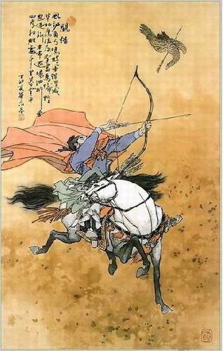 草枯鹰眼疾,雪尽马蹄轻。 [译文] 野草枯萎,鹰眼锐利;积雪溶化,马蹄轻快。 [出自] 王维 《观猎》 风劲角弓鸣,将军猎渭城。 草枯鹰眼疾,雪尽马蹄轻。 忽过新澧市,还归细柳营。 回看射雕处,千里暮云平。 ![]() 注释: 诗题一作《猎骑》。《乐府诗集》、《万首唐人绝句》取此诗前四句作一首五绝,题作《戎浑》,《全唐诗》亦以《戎浑》录入卷五一一张祜集中,皆误。 渭城:秦时咸阳城,汉改称渭城,在今西安市西北,渭水之北。 新丰市:故址在今陕西省临潼县东北,是古代盛产美酒的地方。 细柳营:在今陕西省长安县,是汉代名将周亚夫屯军之地。《史记·绛侯周勃世家》:"亚夫为将军,军细柳以备胡。" 借此指打猎将军所居军营。 角弓:用兽角装饰的弓 。 眼疾:目光敏锐。 暮云平:傍晚的云层与大地相连。 射雕:北齐斛律光精通武艺,曾射中一雕,人称“射雕手”,此引用其事以赞美将军。 译文: 角弓上箭射了出去,弦声和着强风一起呼啸!将军的猎骑,飞驰在渭城的近郊。枯萎的野草,遮不住尖锐的鹰眼;积雪融化,飞驰的马蹄更像风追叶飘。转眼间,猎骑穿过了新丰市,驻马时,已经回到细柳营。凯旋时回头一望,那射落大雕的地方;千里无垠,暮云笼罩,原野静悄悄。 赏析: 一个全身装的将军,在渭城狩猎,只听见风的吼声与拉弓射箭的声音。放眼望去,雪后的原野,衰落草凋枯,动物无所隐藏。鹰徘徊在高空中,很快就发现在目标。原野上骑着马狩猎的将军很快赶过去,收获猎物。不久,就已满载而归。瞧那威武的将军早已过了新澧市,就要到细柳营了。忽然,将军蓦然回首,只看见射雕的空中,绵连数千里的云霞如大海般平静。 全诗描写了将军狩猎的事儿。第一联,开门见山,写了将军狩猎的地点,通过“风劲”与“角弓鸣”两个意象突显了将军射箭技术之高超。第二联通过对周围环境进行描写“草枯”“雪尽”,从而描写了一幅“雪后衰草图”,只见猎鹰在空中徘旋,“将军骑马赶猎物”其中构成了因果关系。第三联,从侧面表现了将军的狩猎骑术技术之高超。尾联,能过将军回望射雕处,自然的过渡到对景物的描写。“千里暮云平”这样的景物也表达了作者的心胸之宽广,另外,“射雕处”与“角弓鸣”照应,从而更好的表现了将军骑射技术之高超。 其中最令读者玩味的一句,莫过于“草枯鹰眼疾,雪尽马蹄轻”不仅画出了一副“雪后衰草图”而且通过“疾”“轻”两个形容词,使我们似乎看到了鹰那双望穿千里的眼睛,也看见了将军骑马在雪原上飞奔的场面。这两个典型的艺术形象。 全诗形象生动鲜明,景物描写准确,细致,大气,是一副典型的“雪原狩猎图”。 、“草枯鹰眼疾,雪尽马蹄轻。” 经过一个冬天,野草枯萎,小动物无处藏身,猎鹰的眼睛更容易发现猎物,更加敏锐。冬雪消融,马跑起来没有了雪的软绵滞碍,嘚嘚马蹄异常轻快。“鹰眼疾”、“马蹄轻”写出了狩猎的痛快淋漓,反映了诗人观猎时心情的轻松愉快。猎鹰在上空盘旋侦察,发现猎物,扑向地面。猎手看到信号,驱马急驰追赶。空中和地上同时围捕,场面生动而有气势。 两句诗对仗工整,各自独立,而内在意义却前后相承。