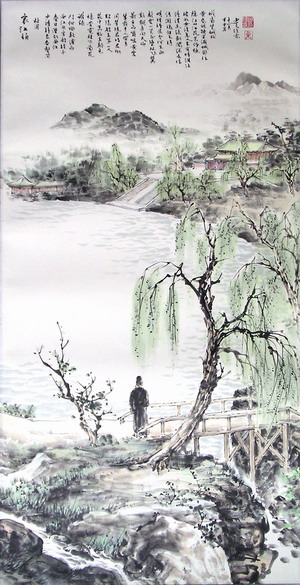 人生有情泪沾臆,江水江花岂终极? [译文] 人生有情,想到世事变化,有谁不泪落沾襟?江水流呵江花飘,年年依旧,岂有终境? [出自] 杜甫 《哀江头》 哀江头 少陵野老吞声哭,春日潜行曲江曲。 江头宫殿锁千门,细柳新蒲为谁绿。 忆昔霓旌下南苑,苑中景物生颜色。 昭阳殿里第一人,同辇随君侍君侧。 辇前才人带弓箭,白马嚼啮黄金勒。 翻身向天仰射云,一箭正坠双飞翼。 明眸皓齿今何在,血污游魂归不得, 清渭东流剑阁深,去住彼此无消息。 人生有情泪沾臆,江水江花岂终极。 黄昏胡骑尘满城,欲往城南望城北。 ![]() 注解: 1、江头宫殿:《杜臆》云:“曲江,帝妃游幸之所,故有宫殿。”后来毁坏了,所以到唐文宗时,读了杜甫这首,“乃知天宝以前曲江四岸皆有行宫台殿,百司署,思复升平故事,故为楼殿以壮之。”(《旧唐书·文宗纪》) 2、霓旌:皇帝仪仗中一种旌旗,缀有五色羽毛,望之如虹霓。南苑,即芙蓉苑,因在曲江东南,故名。 3、昭阳殿:汉成帝时宫殿,赵飞燕姊妹所居,唐人诗中多以赵飞燕喻杨贵妃。 4、第一人:最得宠的人。 5、啮:咬,衔。 6、勒:马衔的嚼口。 7、清渭两句:马嵬南滨渭水,是杨贵妃死处,剑阁在蜀,是玄宗入蜀所经。借喻二人一生一死,了无消息。剑阁,注见卷三《长恨歌》。去住:去指唐玄宗,住指杨贵妃,意即死生。 少陵:杜甫祖籍长安杜陵。少陵是汉宣帝许皇后的陵墓,在杜陵附近。杜甫曾在少陵附近居住过,故自称“少陵野老”。 吞声哭:哭时不敢出声。 潜行:因在叛军管辖之下,只好偷偷地走到这里。曲江曲:曲江的隐曲角落之处。 “江头”一句:写曲江边宫门紧闭,游人绝迹。江头宫殿:《旧唐书·文宗纪》:“上(文宗)好为诗,每诵杜甫《曲江行》(即本篇)......乃知天宝以前,曲江四岸皆有行宫台殿、百司廨署。”王嗣奭《杜臆》卷二:“曲江,帝与妃游幸之所,故有宫殿。” 为谁绿:意思是国家破亡,连草木都失去了故主。 霓旌:云霓般的彩旗,指天子之旗。《文选》司马相如《上林赋》:“拖蜺(同‘霓’)旌。”李善注引张揖曰:“析羽毛,染以五采,缀以缕为旌,有似虹蜺之气也。”南苑:指曲江东南的芙蓉苑。因在曲江之南,故称。 生颜色:万物生辉。 昭阳殿:汉代宫殿名。汉成帝皇后赵飞燕之妹为昭仪,居住于此。唐人多以赵飞燕比杨贵妃。 第一人:最得宠的人。 辇:皇帝乘坐的车子。古代君臣不同辇,此句指杨贵妃的受宠超出常规。 才人:宫中的女官。 嚼啮:咬。 黄金勒:用黄金做的衔勒。 仰射云:仰射云间飞鸟。 一笑:杨贵妃因才人射中飞鸟而笑。正坠双飞翼:或亦暗寓唐玄宗和杨贵妃的马嵬驿兵变。 “明眸皓齿”两句:写安史之乱起,玄宗从长安奔蜀,路经马嵬驿,禁卫军逼迫玄宗缢杀杨贵妃。《旧唐书·杨贵妃传》:“及潼关失守,从幸至马嵬,禁军大将陈玄礼密启太子,诛国忠父子。既而四军不散,玄宗遣力士宣问,对曰:‘贼本尚在。’盖指贵妃也。力士复奏,帝不获已,与妃诀,遂缢死于佛室。时年三十八,瘗于驿西道侧。” 清渭东流两句:仇兆鳌注:“马嵬驿,在京兆府兴平县(今属陕西省),渭水自陇西而来,经过兴平。盖杨妃藳葬渭滨,上皇(玄宗)巡行剑阁,市区住西东,两无消息也。”(《杜少陵集详注》卷四)清渭,即渭水。剑阁,即大剑山,在今四川省剑阁县的北面,是由长安入蜀必经之道。《太平御览》卷一六七引《水经注》:“益昌有小剑城,去大剑城三十里,连山绝险,飞阁通衢,故谓之剑阁也。” 人生两句:意谓江水江花年年依旧,而人生有情,则不免感怀今昔而生悲。以无情衬托有情,越见此情难以排遣。 胡骑:指叛军的骑兵。 欲往城南句:写极度悲哀中的迷惘心情。原注:“甫家住城南。”望城北:走向城北。北方口语,说向为望。望,一作“忘”。城北,一作“南北”。 译文: 少陵老人忍气吞声地抽泣不停, 春日里偷偷地到曲江深处漫行。 江头宜春苑芙蓉苑都紧锁宫门, 杨柳轻柔菰蒲娇嫩苍绿为谁生? 想当年銮驾游猎来到了芙蓉苑, 苑中的花树似乎焕发异样光彩。 昭阳殿杨太真是最受皇宠的人, 与皇上同车出入陪伴好比形影。 御车前矫捷女官人人背带弓箭, 白马嘴里衔嚼全部是黄金做成。 有个女官翻身向天上仰射一箭, 一箭发射出去坠落了两只飞禽。 明眸皓齿的杨贵妃而今在何处? 满脸污血的游魂不能回归宫廷。 清清渭水向东流剑阁峥嵘林深, 君去妃留生死间彼此消息不灵。 人生有情死别有谁不泪落沾襟? 江水流呵江花飘悲伤岂有终境? 黄昏时尘埃满天胡骑又来劫城, 想往南逃却往北方向无法辨清! 译文1: 祖居少陵的野老(杜甫自称)无声地痛哭,春天偷偷地来到了曲江边。江岸的宫殿千门闭锁,细细的柳丝和新生的水蒲为谁而绿?回忆当初皇帝的彩旗仪仗下了南苑,苑里的万物都生出光辉。昭阳殿里的第一美人也同车出游,随侍在皇帝身旁。车前的宫中女官带着弓箭,白马套着带嚼子的黄金马勒。翻身朝天上的云层射去,一笑之间双飞的一对鸟儿便坠落在地。杨贵妃明亮的眼睛和洁白的牙齿在哪里呢?鲜血玷污了她的游魂,再也不能归来!清清的渭水向东流去,而玄宗所在的剑阁是那么深远。走的和留下的彼此没有消息。人生有情,泪水沾湿了胸臆,江水的流淌和江花的开放哪里会有尽头呢?黄昏时,胡骑扬起满城的尘土,我想去城南,却望着城北。 译文2: 我这个少陵的野老忍不住悲声哭泣,在春日里偷偷地来到曲江的隐僻之地独自徘徊。曲江两
